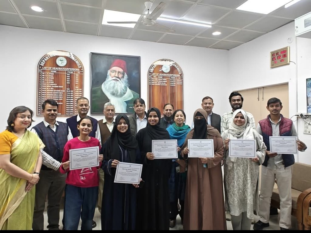 Mini group discussions enabled students to deliberate on the economic significance of Swadeshi Nationalism, global supply chain disruptions, and the potential of native products in promoting self-reliance. Essay and slogan writing competitions were also held, with winners including Afifa Anjum and Arsalan Khan (Essay) and Gunjan Sharma, Ruma Idrees and Iqra Fatima (Slogan). Certificates were distributed by senior faculty members of the department.