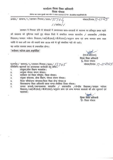 भोपाल के सभी शासकीय एवं अशासकीय विद्यालयों के समय में परिवर्तनसुबह 8.30 बजे के बाद लगेंगे पहली से आठवीं तक के स्कूलJansampark Madhya Pradesh PRO Bhopal