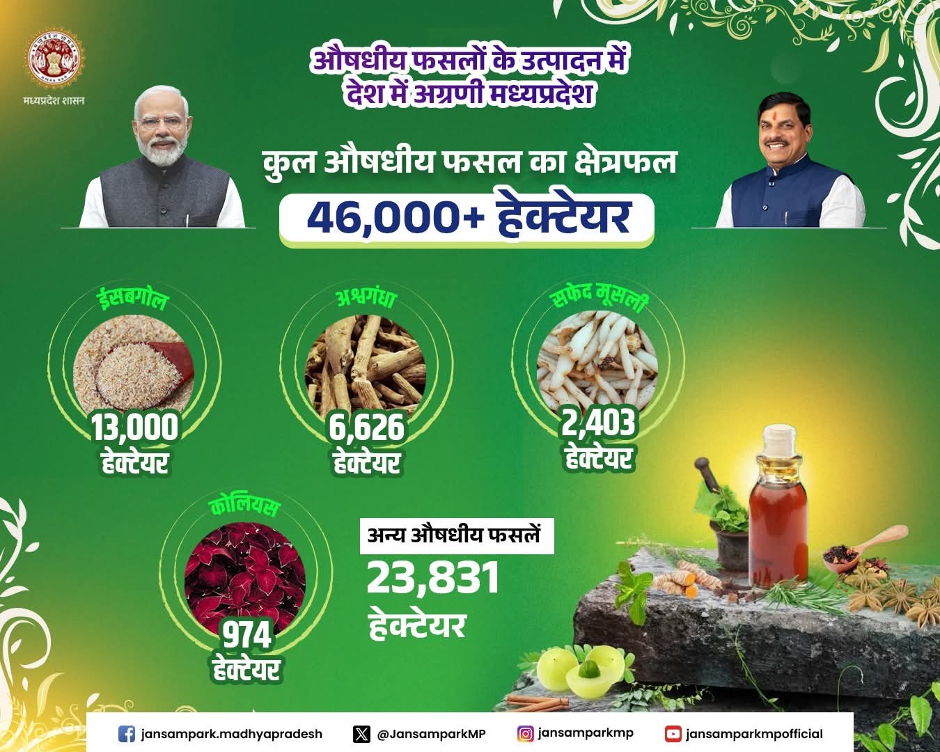 औषधीय फसलों के उत्पादन में देश में अग्रणी मध्यप्रदेश