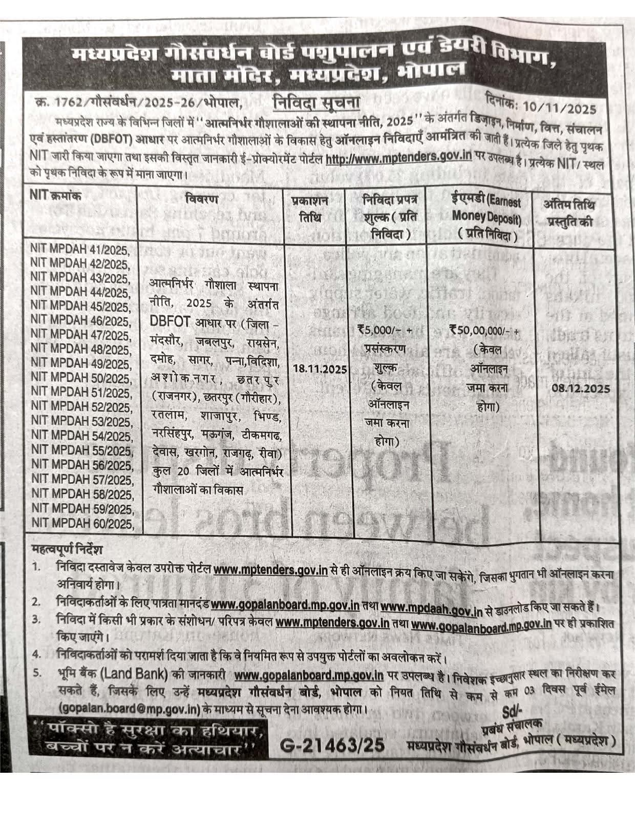 #आत्मनिर्भर गो-शालाओं के विकास हेतु #ऑनलाइन निविदा आमंत्रित...