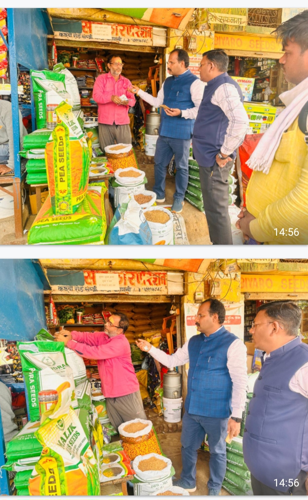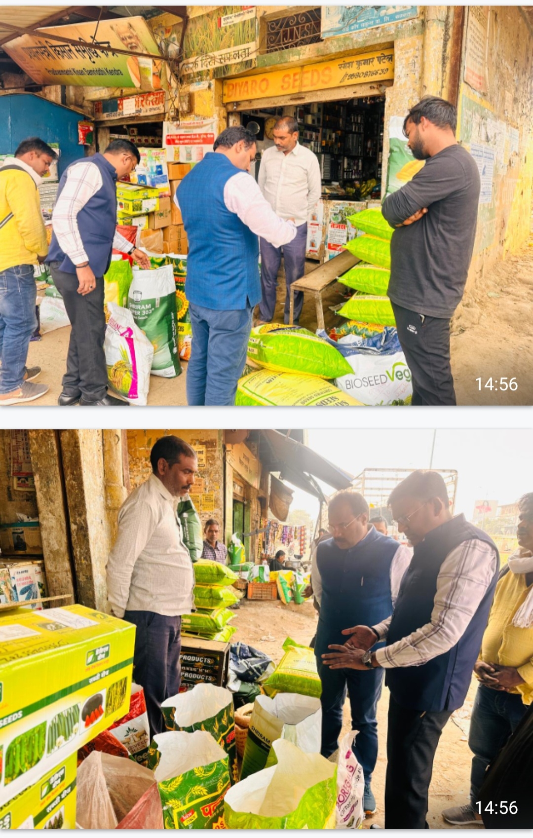 रबी अभियान 2025 को सफल बनाए जाने हेतु जनपदीय प्रवर्तन दल के अध्यक्ष उप कृषि निदेशक श्री अमित जायसवाल के द्वारा जिला कृषि अधिकारी श्री संगम सिंह के साथ संयुक्त रूप से कछवा मंडी के पास संचालित बीज एवं खाद की दुकानों की सघन छापेमारी की गई है , इस अवसर पर उप कृषि निदेशक श्री अमित जायसवाल के द्वारा निर्देशित किया गया है जनपद के सभी उर्वरक विक्रेता अपने दुकान पर स्पष्ट रूप से रेट बोर्ड लगाए जिसमें उर्वरकों का निर्धारित मूल्य तथा सरकार दिए द्वारा दिए जाने वाले सब्सिडी का विवरण होना चाहिए तथा किसानों को उनकी खतौनी के अनुसार पोस मशीन में अंगूठा लगाते हुए निर्धारित दर पर उर्वरक उपलब्ध कराए यदि किसी भी उर्वरक विक्रेता/समिति के द्वारा निर्धारित दर से अधिक दर पर बिक्री या अवैध रूप से पोस से खारिज करने का प्रयास किया जाता है उसके विरुद्ध उर्वरक गुण नियंत्रक के अंतर्गत कड़ी कार्रवाई सुनिश्चित होगी,इसी के साथ-साथ जनपद के समस्त बीज विक्रताओं को भी निर्देशित किया जाता है कि किसानों भाइयों को गुणवत्ता युक्त बीज बिक्री किया जाय , यह पुष्टि कर ली जाए कि जो बीज बिक्री हेतु क्रय कर रहे संबंधित बीज/प्रजाति का विक्रय करने का अधिकार जनपद स्तर का उक्त कंपनी को सक्षम स्तर का है कि नहीं यदि ऐसा बीज विक्रय करते हुए पाया गया जिसके बिक्री करने का अधिकार जनपद स्तर का नहीं है तो संबंधित बीज को सीज करते हुए बीज गुण नियंत्रण के अंतर्गत विक्रेता एवं कंपनी दोनों के विरुद्ध कठोर कार्रवाई सुनिश्चित की जाएगी ।।