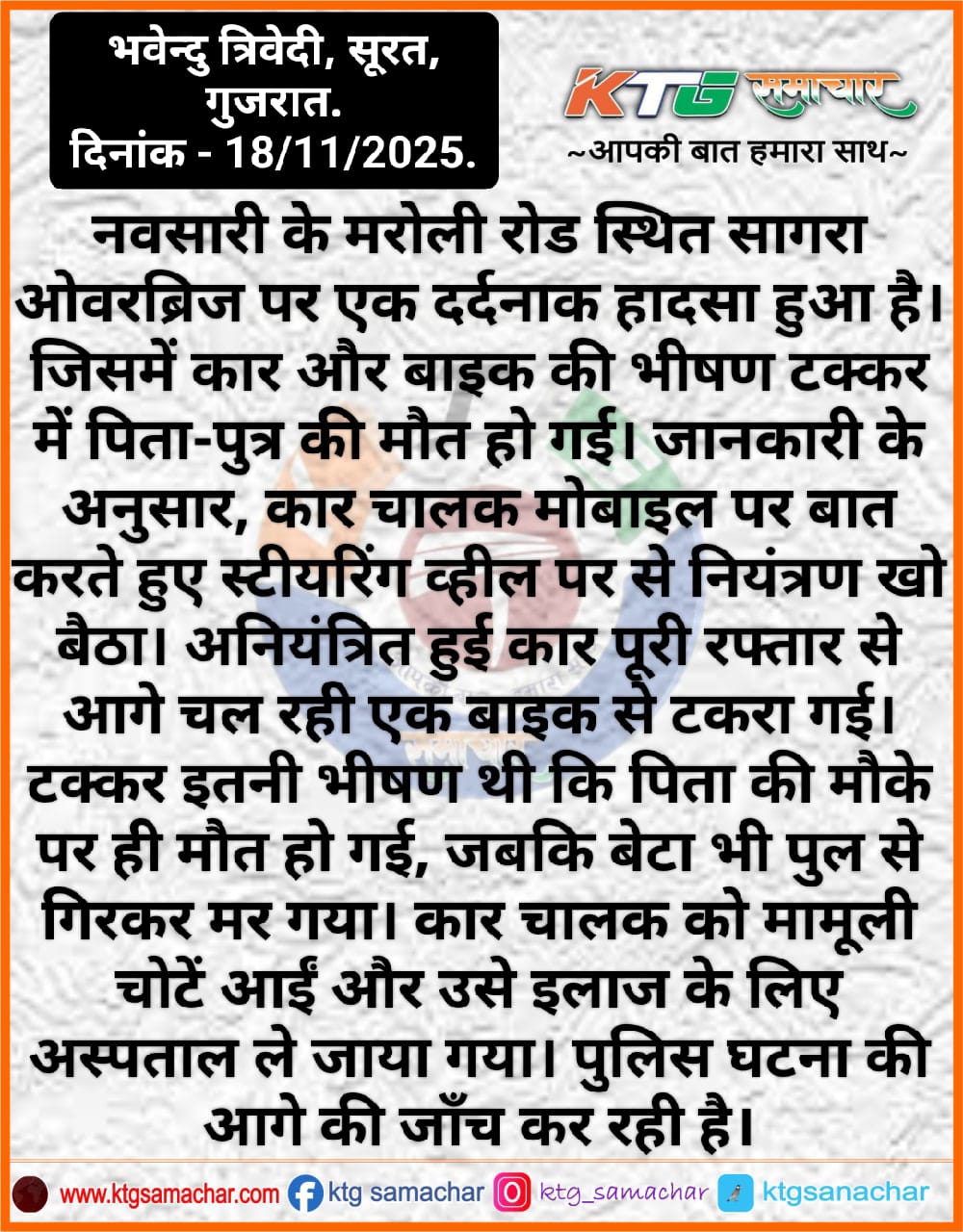 नवसारी के मरोली रोड स्थित सागरा ओवरब्रिज पर एक दर्दनाक हादसा हुआ है।
