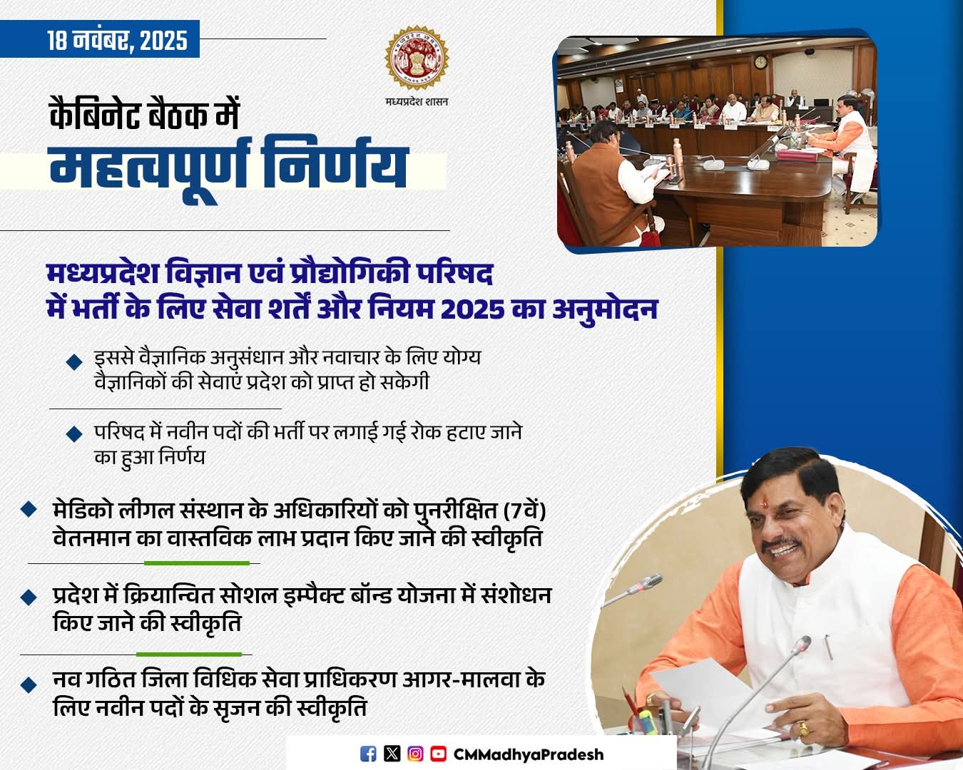 मध्यप्रदेश विज्ञान एवं प्रौद्योगिकी परिषद में भर्ती के लिए सेवा शर्तें और नियम 2025 का अनुमोदन