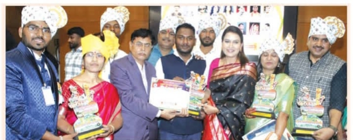 सोलापूर जिल्हा प्रतिनिधी - साऊ-ज्योती सामाजिक संस्था, महाराष्ट्र राज्य यांच्यावतीने आयोजित विविध क्षेत्रातील कर्तृत्ववान व्यक्तींचा कार्यांचा सन्मान सोहळा म्हणून राष्ट्रीय भारत भूषण पुरस्काराने नुकतेच गौरविण्यात आले. त्यामध्ये सिनेअभिनेत्री मृणाल कुलकर्णी यांनाही हा पुरस्कार देऊन गौरविण्यात आले. अ.भा. मराठी चित्रपट अध्यक्ष मेघराजे भोसले, प्रा डॉ शंकर अदानी, पोलीस उपनिरीक्षक पुनम पाटील, वैशाली शेलार, युवराज कुमार, संदीप शर्मा, विष्णू देशमुख, संभाजीराजे जाधवराव, केतकी गावडे, संस्थेचे संस्थापक अध्यक्ष सचिन हळदे, विकास उबाळे, श्रीकांत जोगदंड, अँड.निता शेळके, डॉ उल्हास मोगलेवार, प्रफुल आदी मान्यवरांच्या हस्ते अभिनेत्री मृणाल कुलकर्णी यांना सन्मानित करण्यात आले.