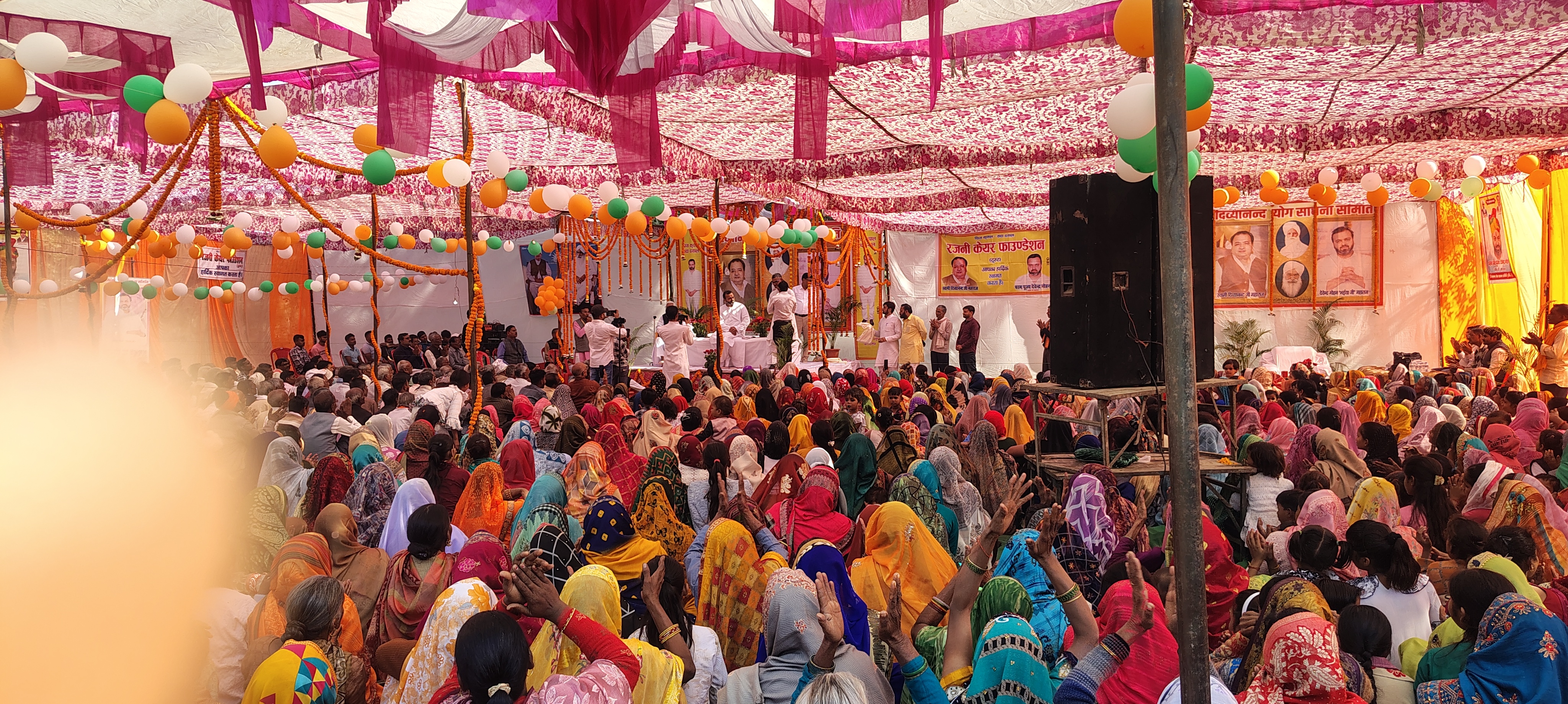 सत्संग पंडाल को भगवा, सफेद और हरे रंग के गुब्बारों और फूलों की मालाओं से राष्ट्रीय एकता और अध्यात्म की भावना के साथ सजाया गया था। यह विशाल आयोजन इस बात का प्रमाण था कि ग्रामीण क्षेत्रों में भी आध्यात्मिक चेतना कितनी गहरी है।
