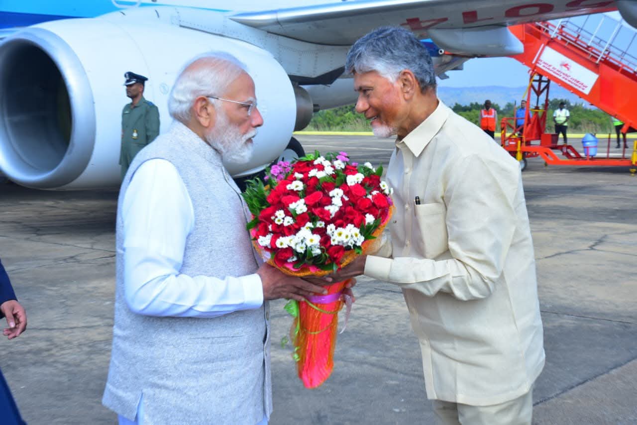 భగవాన్ సత్య సాయిబాబా శత జయంతి ఉత్సవాల్లో పాల్గొనేందుకు పుట్టపర్తి చేరుకున్న ప్రధానమంత్రి నరేంద్ర మోదీ.🔥 స్వాగతిస్తున్న సీఎం చంద్రబాబు నాయుడు, డిప్యూటీ సీఎం పవన్ కళ్యాణ్.