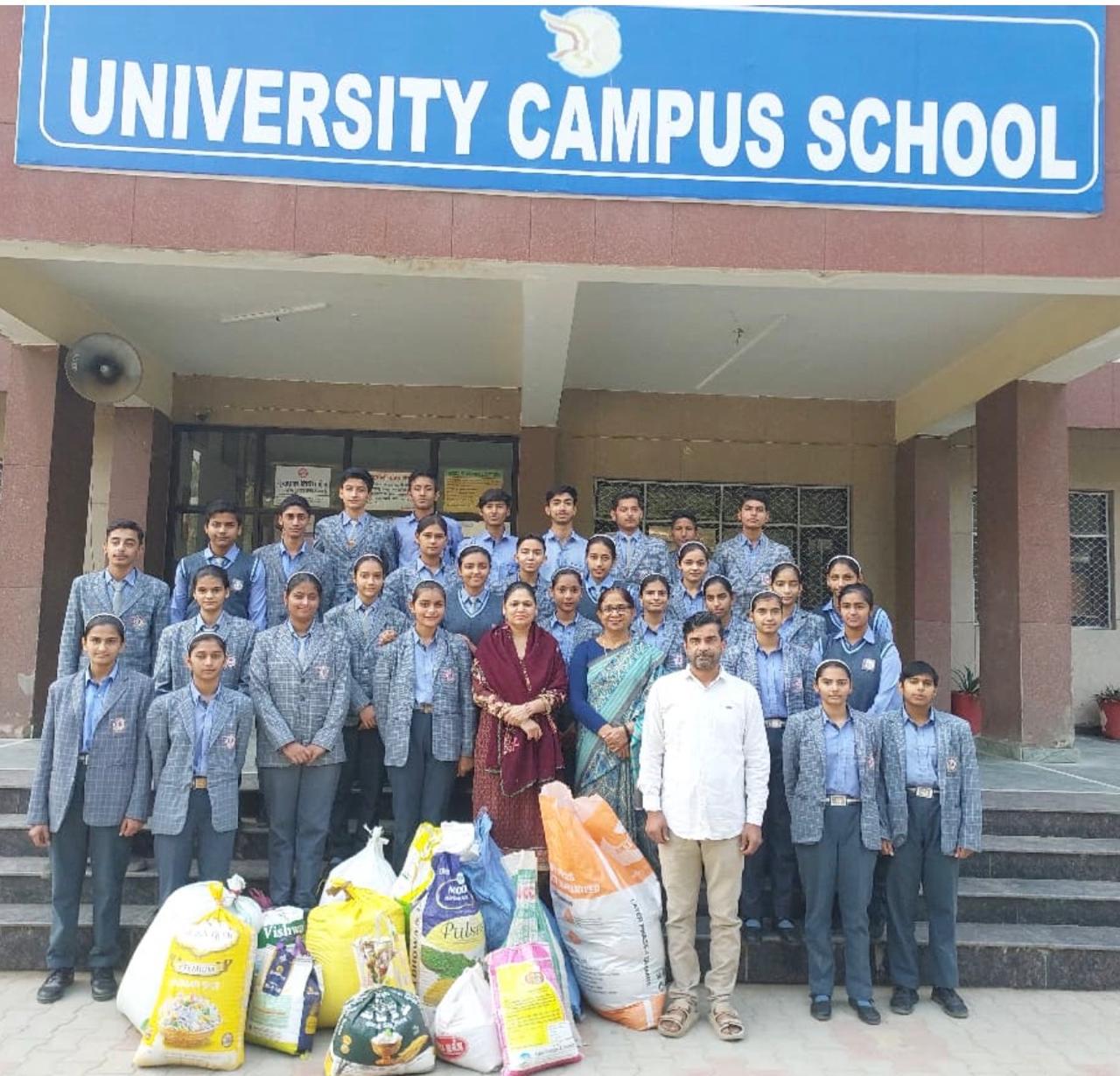 खानपुर कलां -19 नवंबर।भगत फूल सिंह महिला विश्वविद्यालय खानपुर कलां स्थित यूनिवर्सिटी कैंपस स्कूल के विद्यार्थियों द्वारा चलाया गया "एक मुट्ठी अनाज" अभियान सामाजिक दायित्व और सहानुभूति की अनोखी पहल बन गया है। एक मुठ्ठी अनाज अभियान के तहत कैंपस स्कूल के सभी विद्यार्थियों ने अपने अपने घर से अनाज लेकर पांच क्विंटल गेहूं इकट्ठा कर लिया। इन छोटे बच्चों के अभियान ने विश्वविद्यालय के अन्य विद्यार्थियों के लिए प्रेरणा का काम किया है। जानकारी देते हुए स्कूल की प्राचार्य डॉ सरोज ने बताया कि इस निस्वार्थ भाव से किए गए कार्य ने वंचितों के चेहरों पर मुस्कान ला दी। विद्यार्थियों द्वारा किए गए इस मानवीय और सामाजिक काम ने सबका मन जीत लिया है। इस  अनाज को सपना बाल कुंज आश्रम, खानपुर कलां में दान किया गया। डॉ० सरोज सिंह ने कहा कि यह छोटा-सा दयालुता का कार्य लाखों विचारों से अधिक मूल्यवान है। इस प्रकार के योगदान सराहनीय और सामाजिक उत्तरदायित्व में वृद्धि करने वाले हैं।फोटो कैप्शन ;- 01 एकत्रित किए अनाज को सपना बाल कुंज आश्रम के कर्मचारी को सौंपते प्राचार्य डॉ सरोज व अन्य।