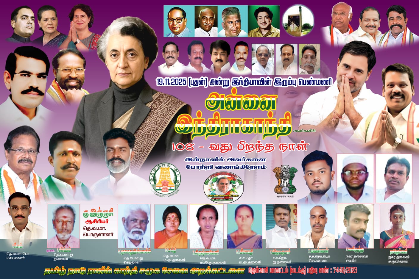 இன்றைய தினம் தென்காசி மாவட்டத்தில் அகில இந்திய ராஜீவ் காந்தி சமூக சேவை அறக்கட்டளையின் தென்காசி வடக்கு மாவட்டத்தின் சார்பாக, இந்தியாவின் முதல் பெண் பிரதமர், இந்தியாவின் இரும்பு பெண்மணி, மறைந்த அன்னை இந்திரா காந்தி அவர்களின் 108 வது பிறந்தநாள். நிறுவனத் தலைவர் A.K. பாண்டியன் அவர்களின் அறிவுறுத்தலின்படி தென்காசி ஒருங்கிணைந்த மாவட்ட தலைவர் நல்லூர் நாயகன் K.S.கணேசன் அவர்களின் வழிகாட்டுதலின்படி கொண்டாடப்பட்டது.அன்னையரின் பிறந்தநாள் விழாவில் தென்காசி வடக்கு மற்றும் தெற்கு மாவட்ட தலைவர்கள் மற்றும் அறக்கட்டளையின் நிர்வாகிகள் கலந்து கொண்டனர்.