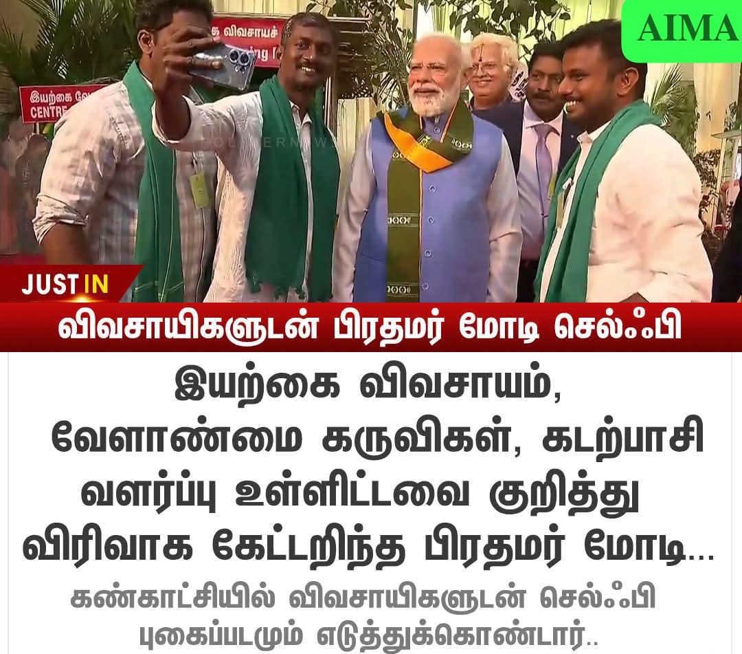 கோவையில் இயற்கை வேளாண் விவசாயிகள் மாநாட்டில் கலந்து கொண்ட பிரதமர் மோடி விவசாயிகளுடன் செல்பி எடுத்து மகிந்தார்