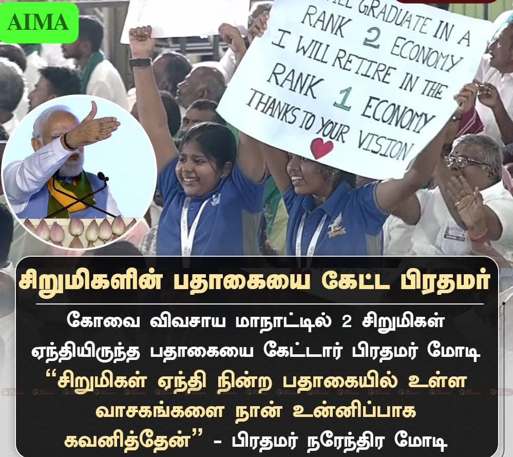 கோவை இயற்கை வேளாண் விவசாயிகள் மாநாட்டில் கலந்து கொண்ட பிரதமர் குழந்தைகள் வைத்திருந்த பாதாகைகளை கேட்டு வாங்கினார்