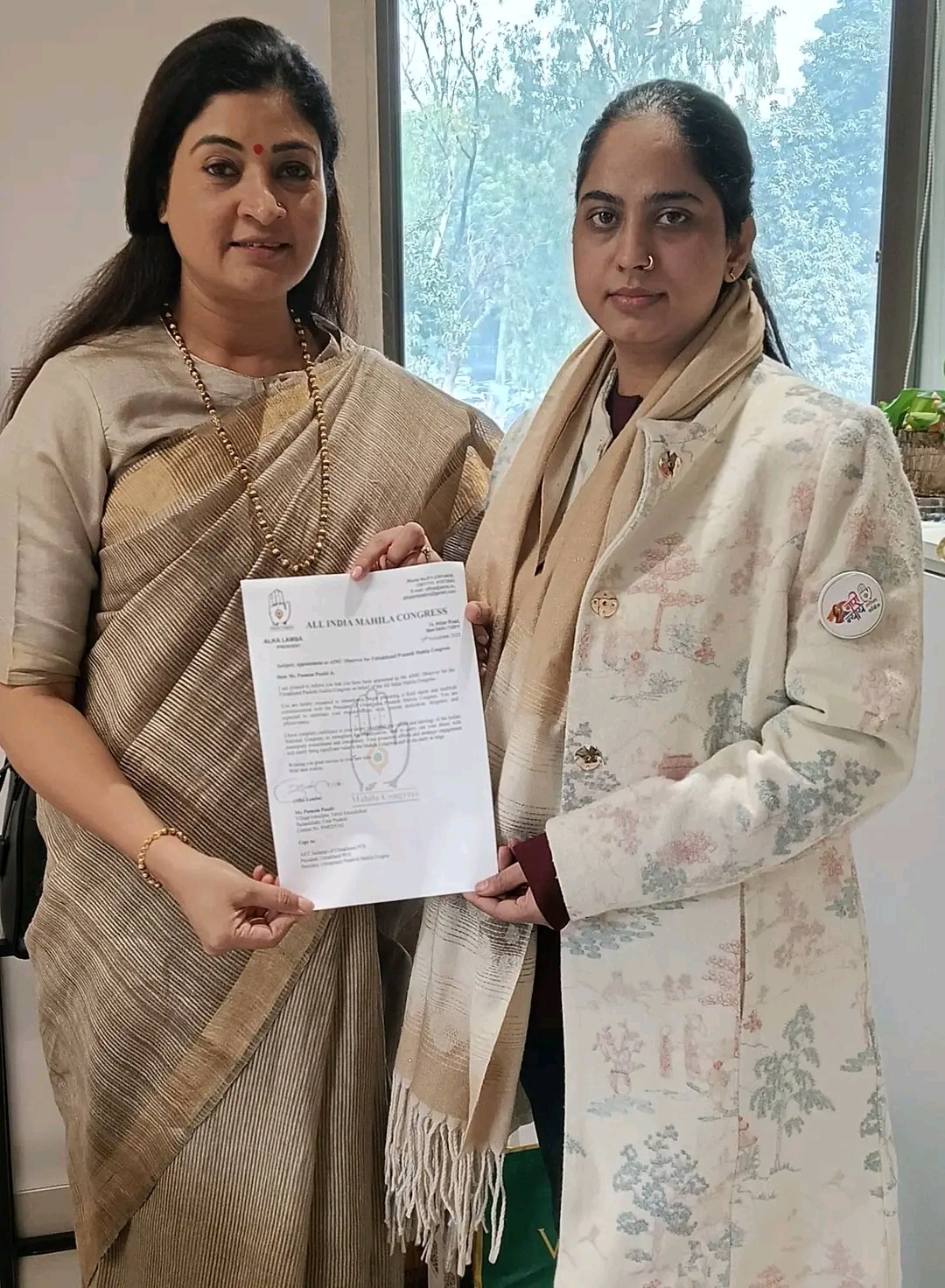 नई दिल्ली, 19 नवम्बर 2025 — अखिल भारतीय महिला कांग्रेस (AIMC) ने उत्तराखंड प्रदेश महिला कांग्रेस में संगठनात्मक सशक्तिकरण को ध्यान में रखते हुए महत्वपूर्ण निर्णय लिया है। संगठन की राष्ट्रीय अध्यक्ष अल्का लांबा ने आधिकारिक पत्र जारी कर सुश्री पूनम पंडित को उत्तराखंड प्रदेश महिला कांग्रेस की पर्यवेक्षक (Observer) नियुक्त किया है।