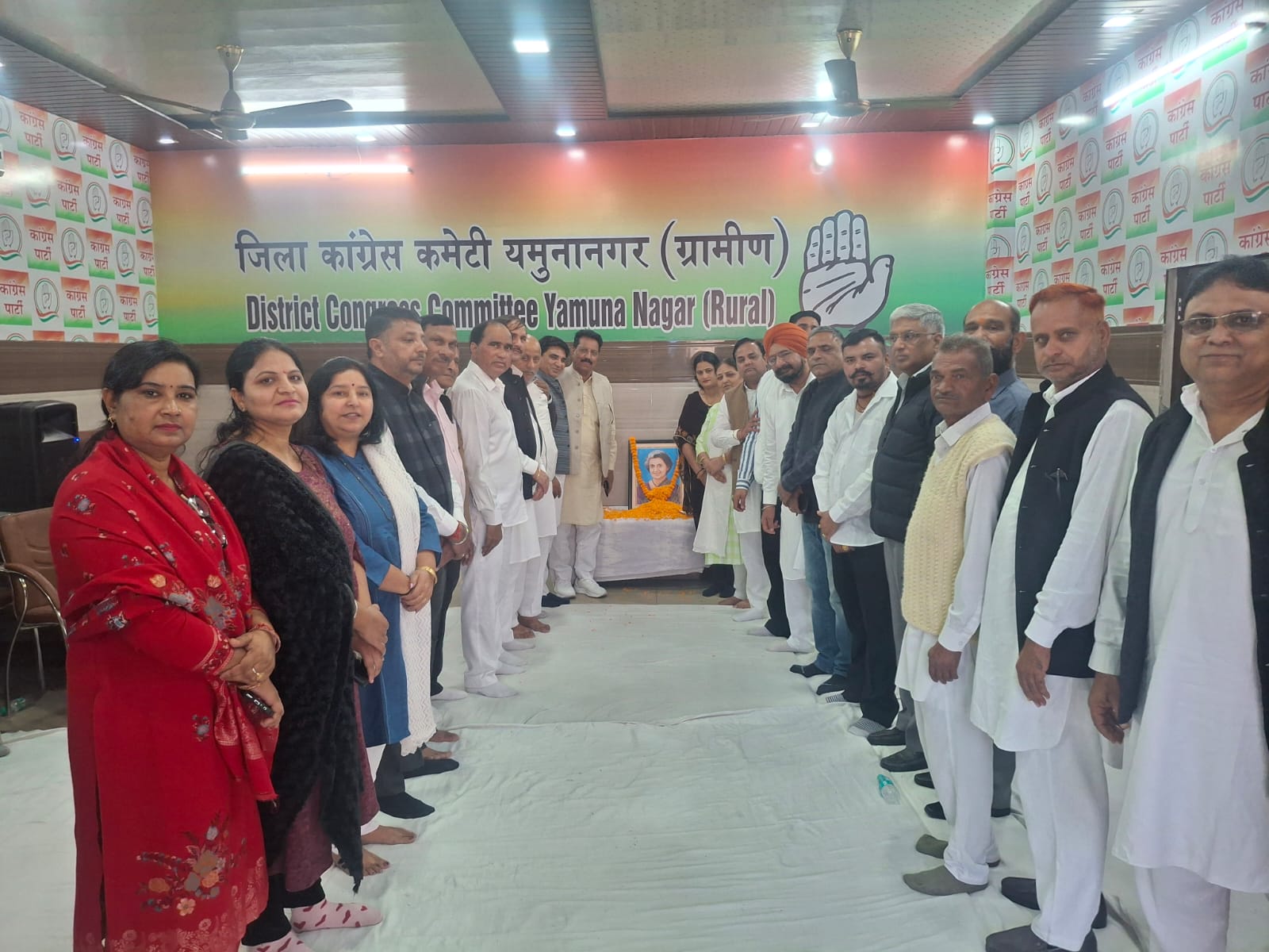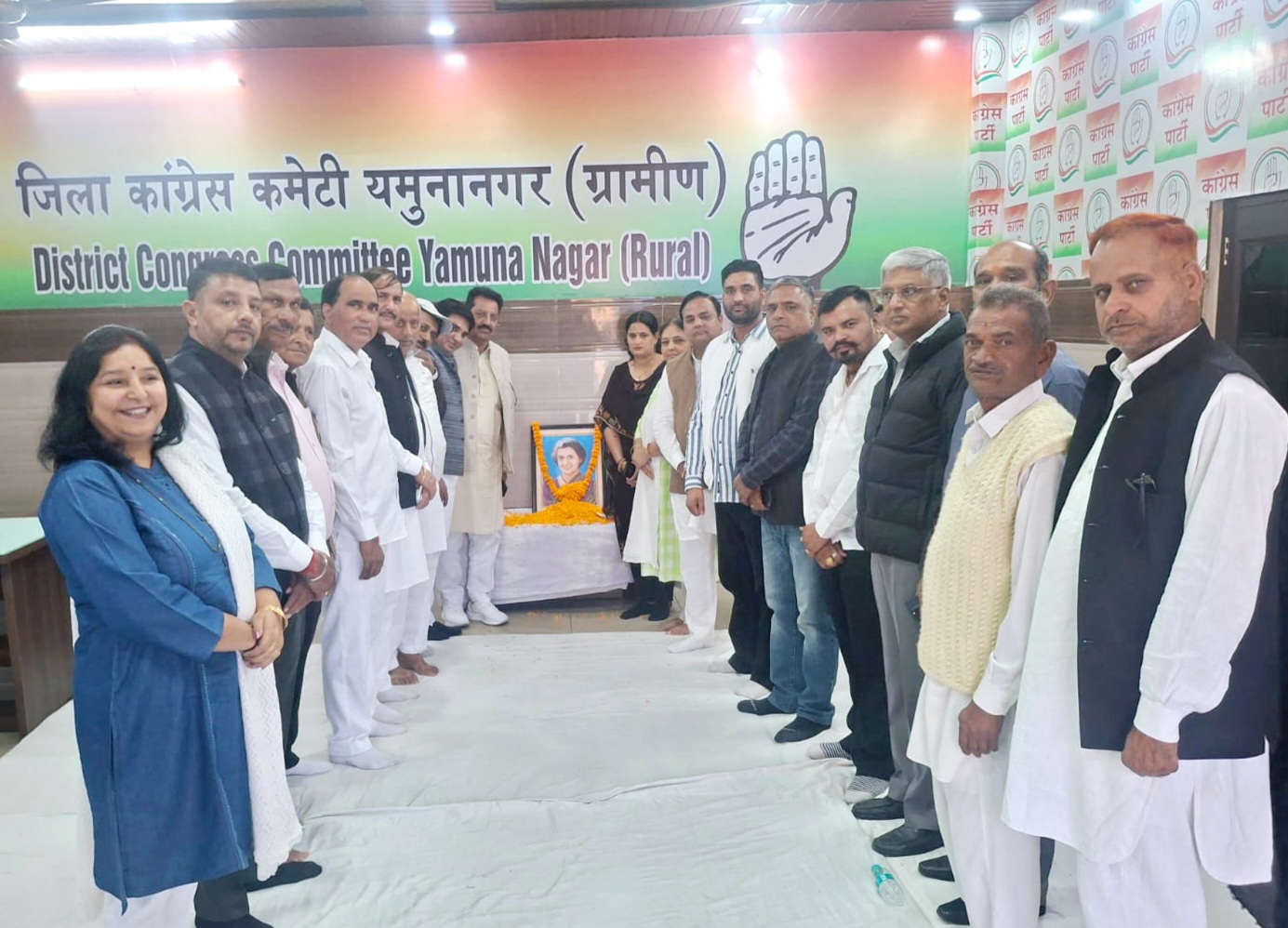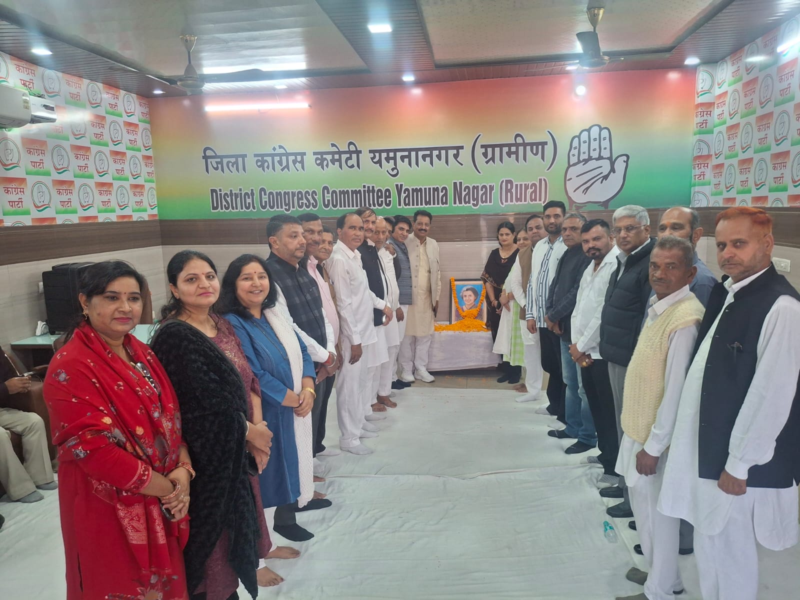 ( Haryana) 19/11/25 : on the birth anniversary of Bharat Ratna, India's first woman Prime Minister, late Smt. Indira Gandhi, at the office of the Rural Unit Congress Committee of District Yamunanagar, all the Congressmen of District Yamunanagar paid homage and offered their tributes. District Rural Congress Committee President Shri Narpal Singh, District Urban Congress Committee President Shri Devendra Singh, both the presidents expressed their views and narrated the glorious saga of late Smt. Indira Gandhi in front of all the workers, along with her achievements and courageous deeds, she threw light on the biography of late Smt. Indira ji, who was like Durga and had the vision of unity and integrity of the country.