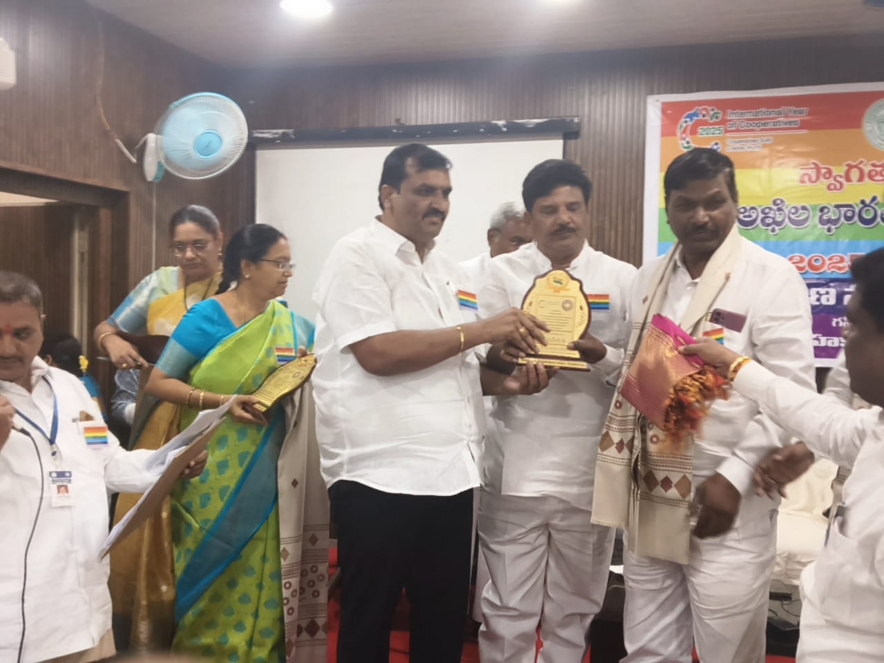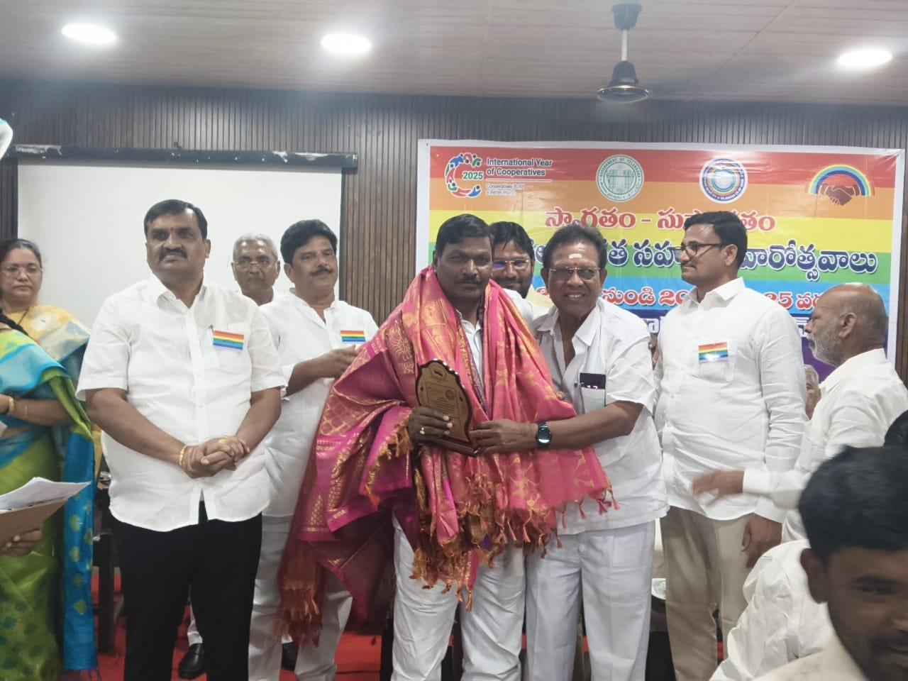 తెలంగాణ రాష్ట్రంలో ప్రతి ఏడాది జరిగేటువంటి అఖిలభారత సహకార 72వ వారోత్సవాలు హైదరాబాద్ లోని నిజాం కాలేజ్ ప్రక్కన గల సహకార సంఘ భవనంలో ఉత్తమ సహకార సంఘా అవార్డులను జాయింట్ రిజిస్టర్ మరియు మేనేజింగ్ డైరెక్టర్ తెలంగాణ సహకార యూనియన్ లిమిటెడ్ కెవిఎస్ అన్నపూర్ణ గారు ఇచ్చారు ఈ వారోత్సవాలు 14-11-2025 నుండి 20-11-2025 వరకు కొనసాగాయి మన జిల్లా నుండి ముగ్గురు పాక్స్ చైర్మన్ లకు అవార్డులను ఇచ్చారు ఈ కార్యక్రమానికి ముఖ్య అతిథులుగా తెలంగాణ రాష్ట్ర ఆగ్రో ఇండస్ట్రీస్ కార్పొరేషన్ చైర్మన్ శ్రీ కాసుల బాలరాజు గారు పాల్గొన్నారు మాట్లాడుతూ ప్రతి ఏడాది జరిగే ఈ వారోత్సవాల్లో మరి కామారెడ్డి జిల్లా నుండి బాన్సువాడ సొసైటీ చైర్మన్ ఎరవల కృష్ణారెడ్డి గారికి మరియు చిల్లర్గి సొసైటీ ఒంటరి శపథం రెడ్డి గారికి, అడ్లూరు ఎల్లారెడ్డి సొసైటీ మర్రి సదాశివ రెడ్డి గారికి మరియు రాష్ట్రంలో మిగతా చైర్మన్ లకు వారు శుభాకాంక్షలు తెలియజేసినారు ఉత్తమఅవార్డు రావడం గర్వకారణంగా ఉందని వారు కొనియాడారు చైర్మన్లు సహకార సంఘల అభివృద్ధికి పాటుపడాలని సొసైటీ చైర్మన్లుగా యువత ముందుకు రావాలని అన్నారు అనంతరం వేదికపై వారికి శాలువాతో సన్మానించి అవార్డులను పంపిణీ చేశారు ఈ కార్యక్రమానికి బాన్సువాడ నియోజకవర్గ మాజీ శాసనసభ్యులు కత్తెర గంగాధర్ గారు, బాన్సువాడ మున్సిపల్ మాజీ చైర్మన్ జంగం గంగాధర్ గారు, కామారెడ్డి జిల్లా కాంగ్రెస్ పార్టీ మైనారిటీ అధ్యక్షులు అబ్దుల్ కలేక్ గారు, మాజీ ఎంపీపీ ఎజాస్ గారు, మాజీ జెడ్పిటిసి గోపాల్ రెడ్డి గారు,యువజన కాంగ్రెస్ జిల్లా అధ్యక్షులు మధుసూదన్ రెడ్డి గారు, మాజీ ఏఎంసీ చైర్మన్ నార్ల రవీందర్ గారు, బాన్సువాడ మాజీ సొసైటీ డైరెక్టర్ పోతు రెడ్డి గారు,తడ్కోల్ మాజీ ఉపసర్పంచ్ వెంకట్ రెడ్డి గారు, యువజన కాంగ్రెస్ నియోజకవర్గ అధ్యక్షులు సయ్యద్ మన్సూర్ గారు, యువజన కాంగ్రెస్ మండల ఉపాధ్యక్షులు అందే రమేష్ గారు, కట్కే రమేష్ గారు, తదితరులు పాల్గొన్నారు