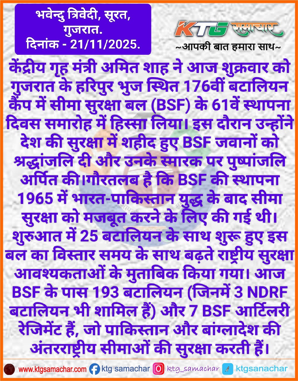 केंद्रीय गृह मंत्री अमित शाह ने आज गुजरात मे बीएसएफ के 61वें स्थापना दिवस समारोह में हिस्सा लिया।