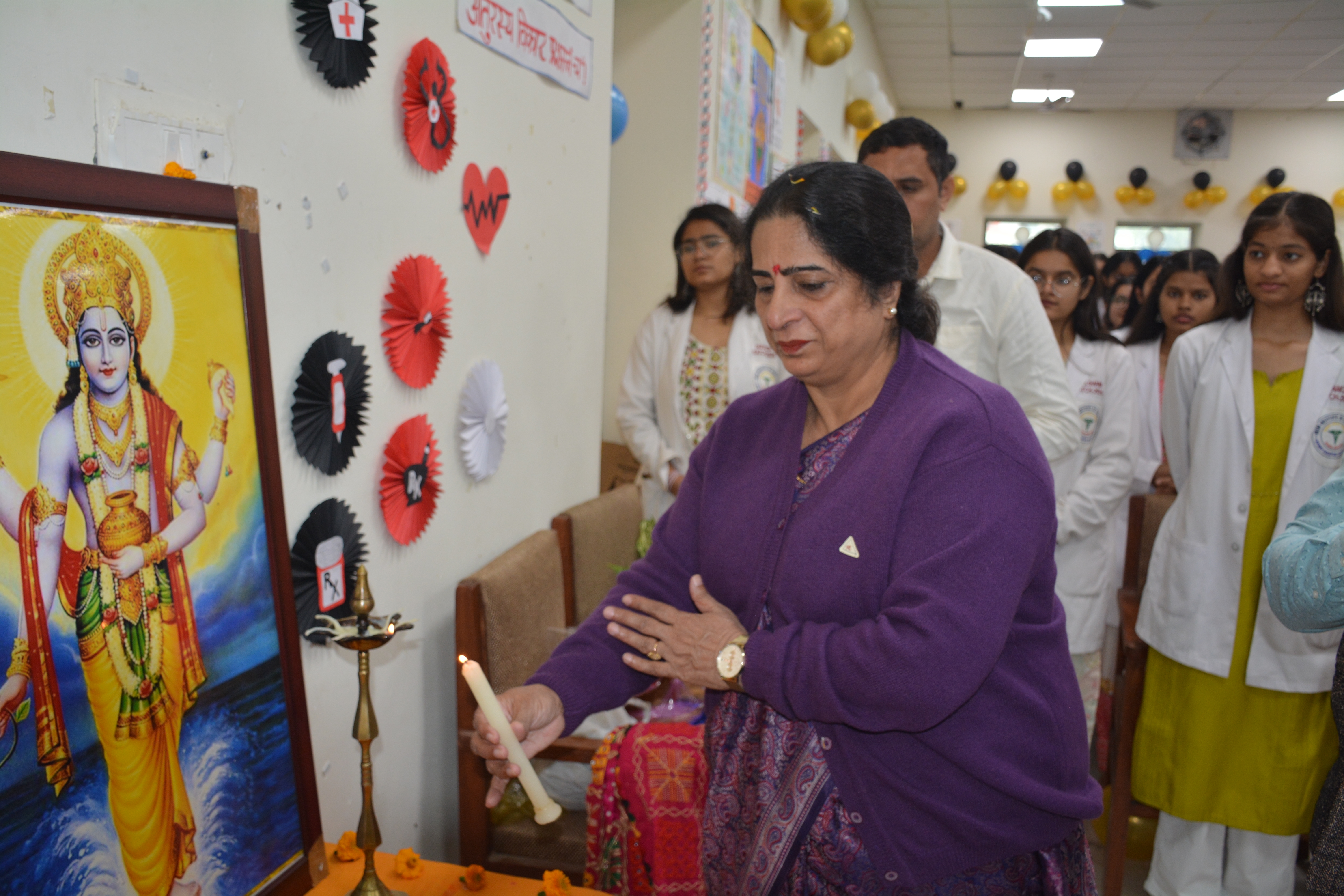 इस अवसर पर नव आगंतुक छात्राओं के लिए एप्रन सेरेमनी व चरक शपथ भी दिलाई गयी।