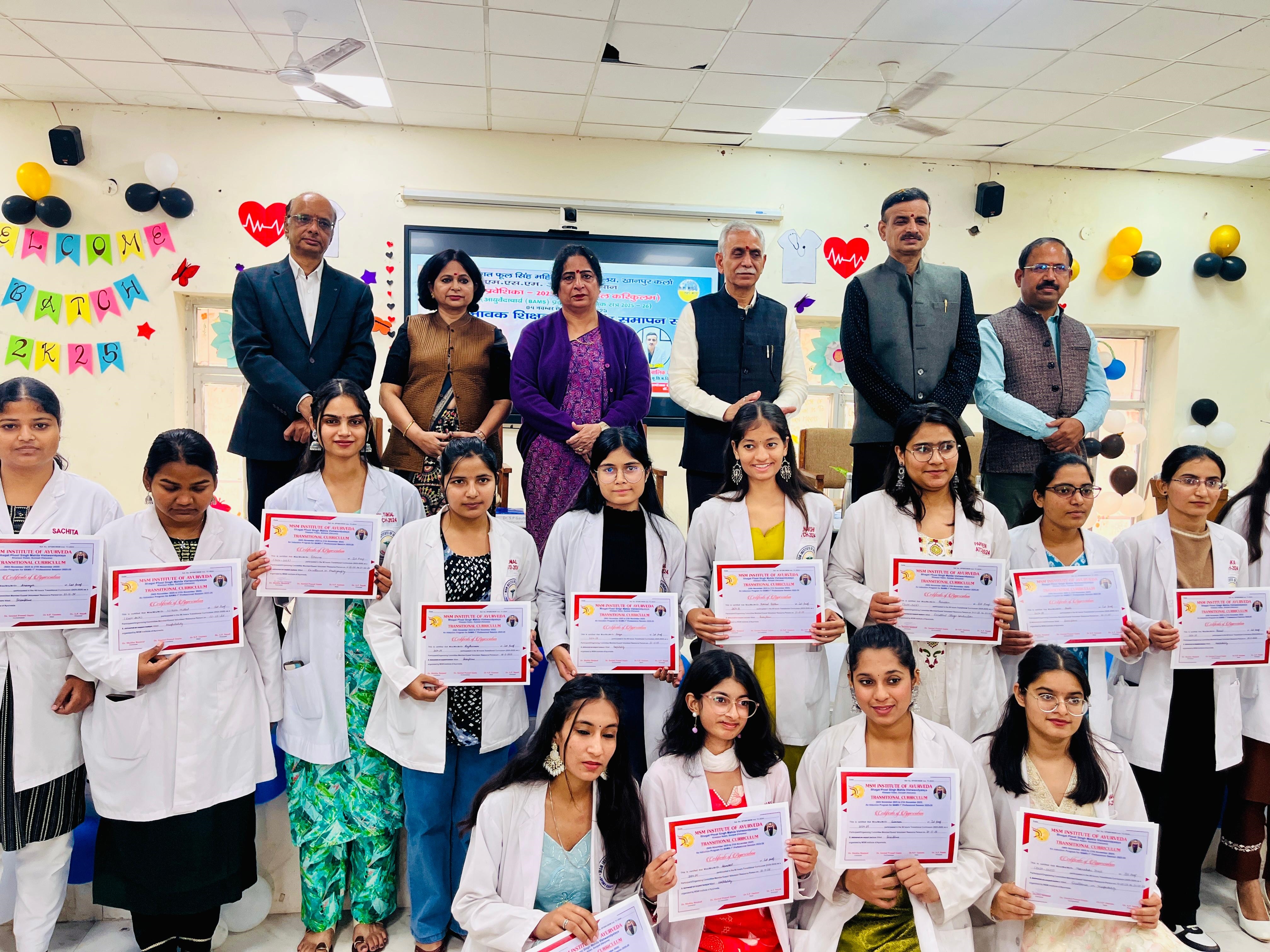बीएएमएस प्रथम वर्ष की नव आगंतुक छात्राओं के लिए आयोजित पंद्रह दिवसीय ‘आयुर प्रवेशिका’ (इंडक्शन प्रोग्राम) का समापन