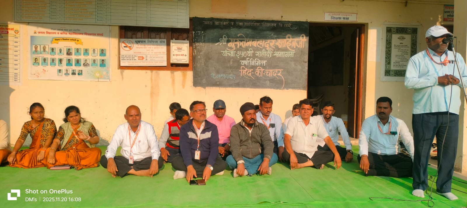 प्राचार्य प्रमोद ठोंबरे यांनी आपल्या मार्गदर्शनपर भाषणात गुरू तेग बहादूर हे मानवतेचे रक्षक, सहनशीलतेचे प्रतीक व धर्मस्वातंत्र्याचे आधारस्तंभ असल्याचे सांगत विद्यार्थ्यांना त्यांच्या आदर्शातून नवी ऊर्जा घेण्याचे आवाहन केले. तर शिक्षक सतीश शेटे यांनी भारताच्या सांस्कृतिक व आध्यात्मिक अस्मितेच्या रक्षणातील गुरूंच्या योगदानावर प्रकाश टाकत विद्यार्थ्यांना त्यांच्या विचारांवर चालण्याची प्रेरणा दिली. प्रमुख उपस्थितीमध्ये सैलानी येथील लखन भौंड व शाळेचे पर्यवेक्षक संजय पिवटे हे होते.