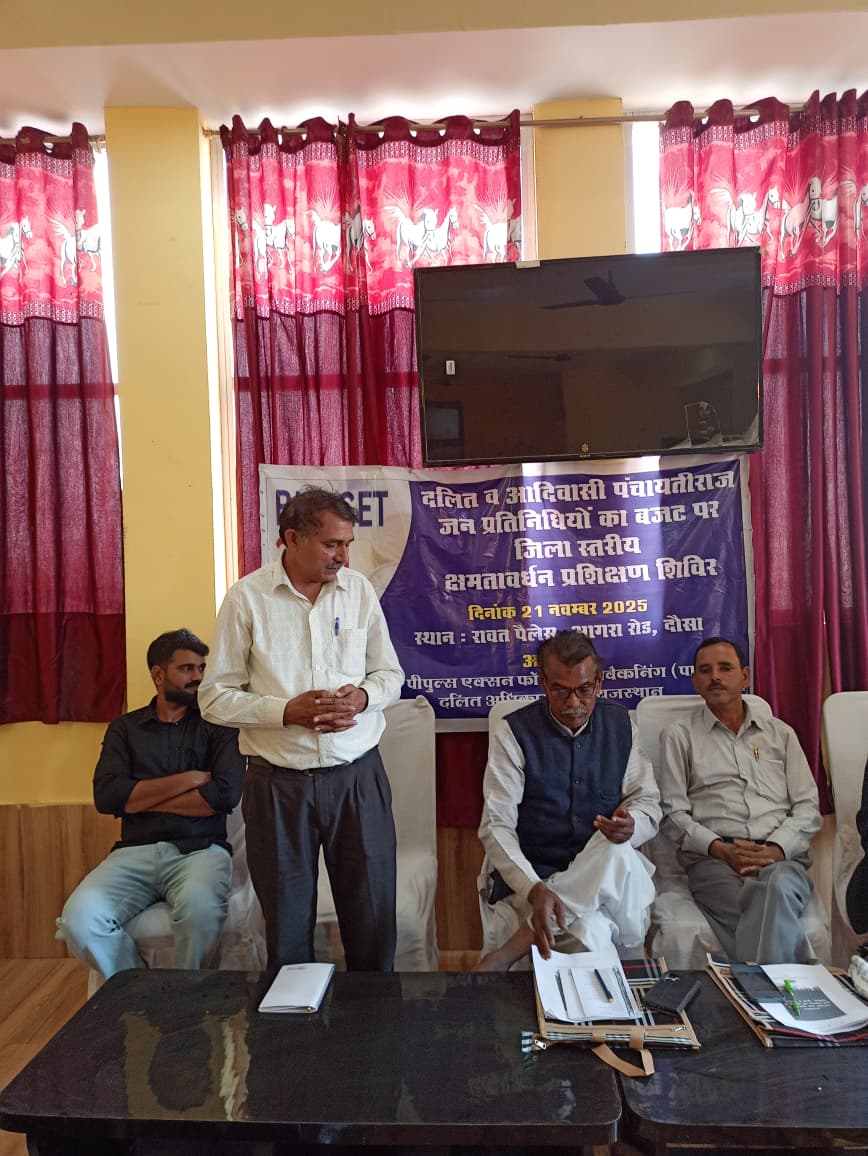 दौसा l पीपुल्स एक्षन फॉर रूरल अवेकनिंग (पारा), नई दिल्ली व दलित अधिकार केन्द्र, जयपुर के संयुक्त तत्वाधान में दिनांक 21 नवम्बर, 2025 को रावत पैलेस, आगरा रोड दौसा में पंचायतीराज दलित जन प्रतिनिधियों का एक दिवसीय जिला स्तरीय प्रशिक्षण शिविर का आयोजन किया गया।