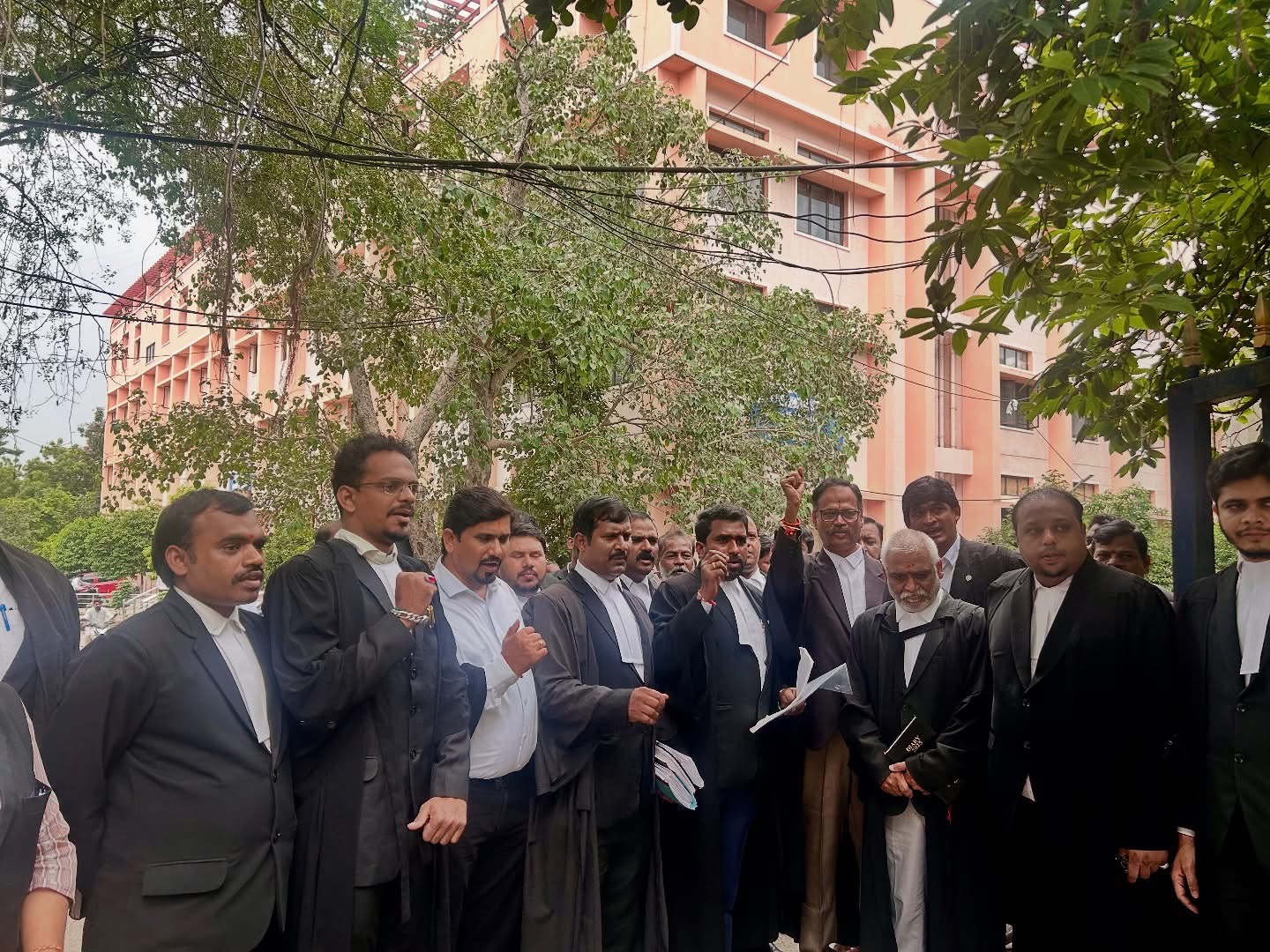 Advocate Mir Qurram Ali**, along with Senior Advocate Laxman, staged a protest at Nampally Criminal Court Hyderabad , demanding the immediate implementation of the **Advocate Protection Act** in Telangana.