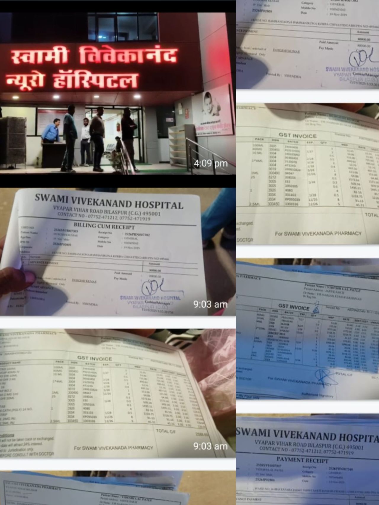 पुन्नी बाई अपने घायल बेटे के इलाज के लिए घर तक बेच चुकी है। दो लाख रुपये अस्पताल में जमा कराने के बाद अब स्वामी विवेकानन्द हॉस्पिटल प्रबंधन उन्हें बेटे को डिस्चार्ज करने के लिए 55 हजार रुपये और देने का दबाव बना रहा है। मजबूरी ऐसी कि पूरा परिवार अब अपने ही गाँव का घर छोड़कर स्कूल में डेरा डालकर रहने को विवश है।