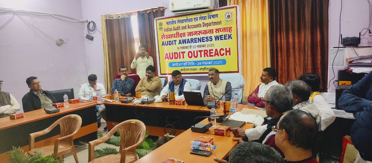 इस क्रम में कार्यालय प्रधान महालेखाकार (लेखापरीक्षा) बिहार, पटना के वरिष्ठ लेखापरीक्षा अधिकारी के नेतृत्व में लेखापरीक्षा दल के द्वारा "लेखा परीक्षा जागरूकता सप्ताह सह कार्यशाला" का आयोजन 24 नवम्बर 2025 को नगर परिषद, लखीसराय में किया गया। इस अवसर पर नगर परिषद् लखीसराय, बड़हिया एवं सूर्यगढ़ा के नगर अध्यक्ष के प्रतिनिधि और उपाध्यक्ष, के साथ-साथ इन नगर निकाय कार्यालयों के अधिकारी/कर्मी भी उपस्थित हुए।