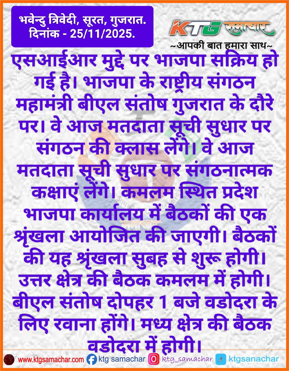भाजपा के राष्ट्रीय संगठन महामंत्री बीएल संतोष गुजरात के दौरे पर।