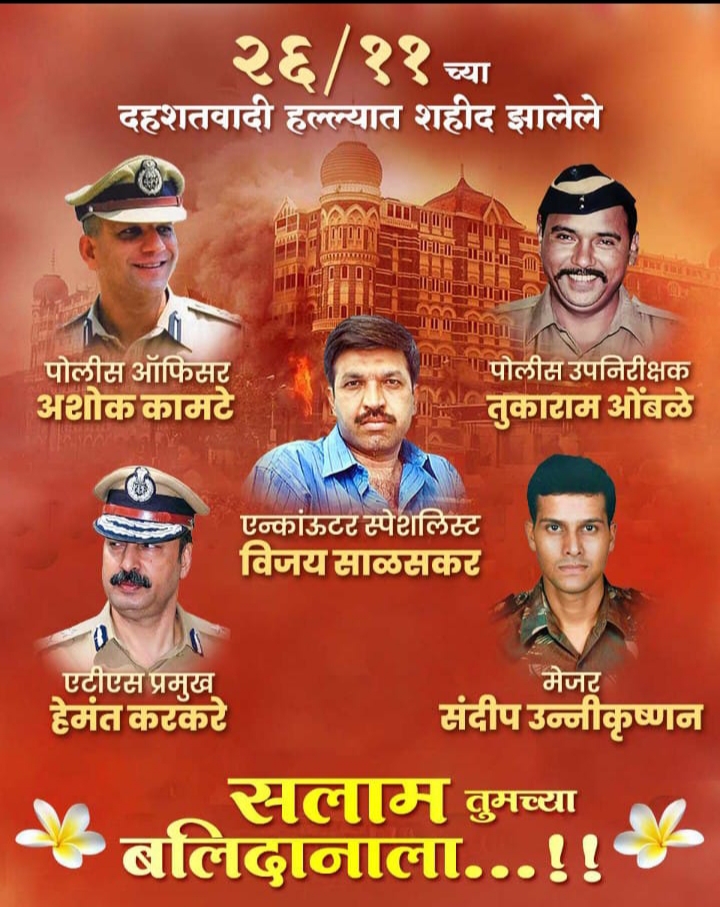26/11 सिर्फ दुख का दिन नहीं। यह उन सभी मासूम लोगों और शहीद जवानों को याद करने का दिन है जिन्होंने देश की रक्षा करते हुए जान दी। मुंबई घायल हुई, मगर टूटी नहीं। वह फिर खड़ी हुई और पहले से ज्यादा मजबूत होकर खड़ी हुई।