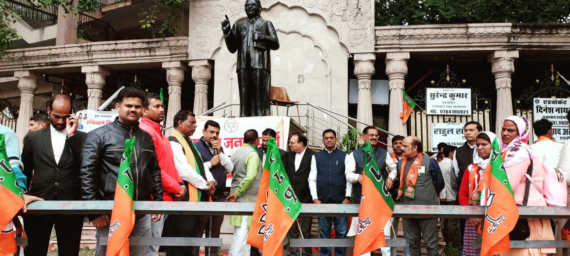 26 नवंबर को देशभर में मनाए जा रहे संविधान दिवस के अवसर पर कोटा में विशेष कार्यक्रम का आयोजन किया गया। नयापुरा स्थित अदालत चौराहा पर डॉ. भीमराव अंबेडकर जी की प्रतिमा पर माल्यार्पण कर संविधान निर्माताओं के प्रति श्रद्धांजलि अर्पित की गई ।