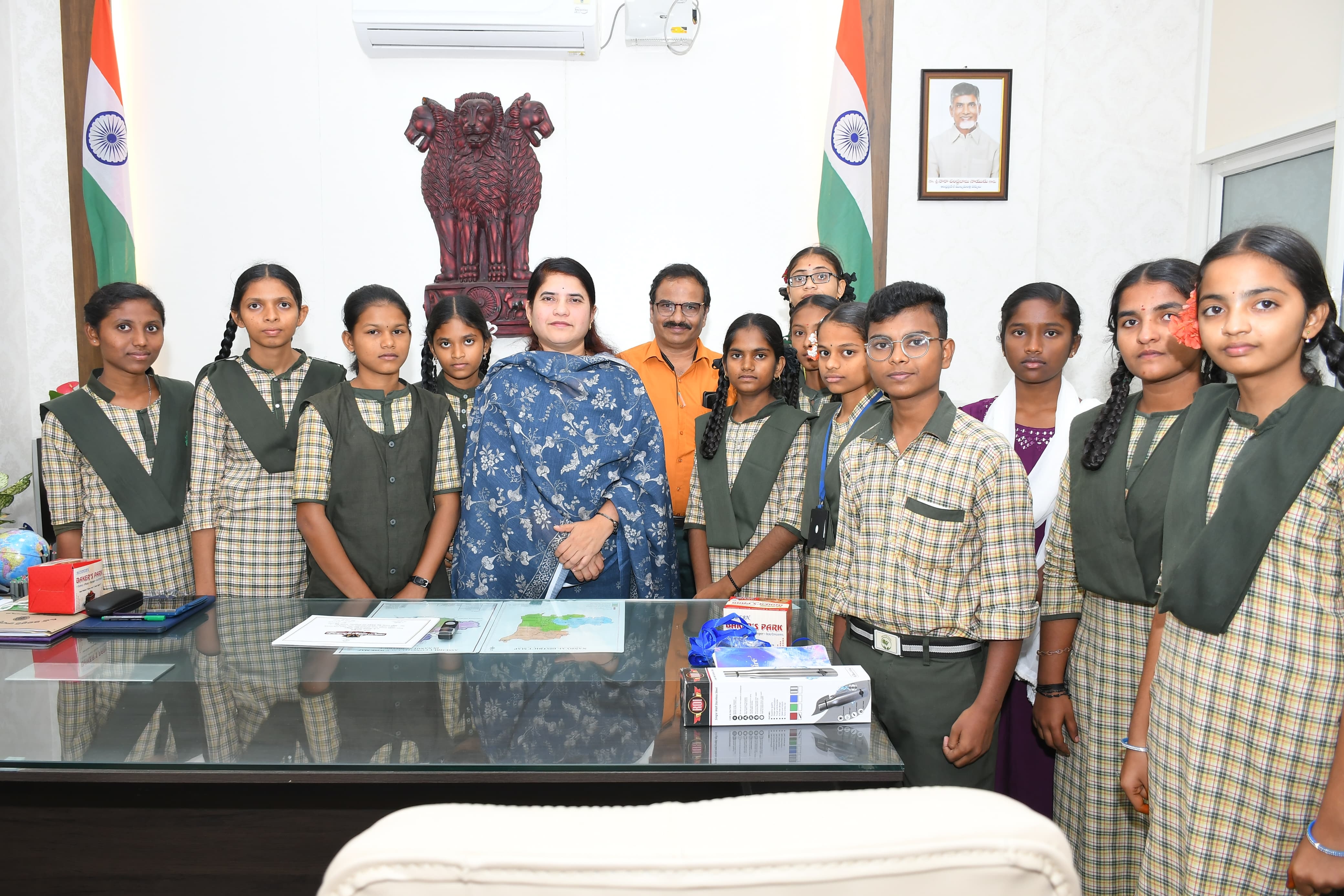 నంద్యాల (AIMA MEDIA): బుధవారం కలెక్టర్ ఛాంబర్‌లో జిల్లా కలెక్టర్ విద్యార్థులతో ముఖాముఖి కార్యక్రమాన్ని నిర్వహించారు.ఈ సందర్భంగా జిల్లా కలెక్టర్ జి. రాజకుమారి మాట్లాడుతూ... ఈ పోటీల ద్వారా పిల్లల్లో రాజ్యాంగ పరిరక్షణ, ప్రజాస్వామ్య విలువలు, పౌర హక్కులు, కర్తవ్యాల పట్ల అవగాహన పెంపొందించడం లక్ష్యమని తెలిపారు. జిల్లాలోని ప్రతి నియోజకవర్గం నుంచి మొత్తం ముగ్గురు విద్యార్థులను ఉత్తమ ప్రతిభ ఆధారంగా ఎంపిక చేసినట్లు వివరించారు.విజేతల వివరాలు ఇలా ఉన్నాయి. ప్రతి నియోజకవర్గం నుంచి ఎంపికైన ఒక ఉత్తమ విద్యార్థి రాష్ట్ర స్థాయిలో నిర్వహించే కార్యక్రమంలో అవార్డు మరియు ప్రశంసాపత్రం పొందారన్నారు. మిగిలిన ఇద్దరు విద్యార్థులకు జిల్లాస్థాయిలోనే జిల్లా కలెక్టర్ చేతుల మీదుగా అవార్డులు మరియు ప్రశంసాపత్రాలు అందజేయడం జరిగింది. కార్యక్రమంలో భాగంగా విద్యార్థులు శాసనసభ కార్యకలాపాలు ఎలా సాగుతాయో నమూనా సేకరించి మాక్ అసెంబ్లీలో పాల్గొన్నారు.ఆళ్లగడ్డ నియోజకవర్గంలోని సోషల్ వెల్ఫేర్ రెసిడెన్షియల్ స్కూల్లోని ఆర్. నాగమోక్షిత, ఏపీ మోడల్ స్కూల్ కోటకందు కోటకందుకూరు విద్యార్థిని కె. వెంకట హన్సిక, నందికొట్కూరులో జడ్పీహెచ్ఎస్ కొణిదెల విద్యార్థినికె. వైష్ణవి,శ్రీశైలంలో జడ్.పి.హెచ్.ఎస్ గర్ల్స్ ఆత్మకూరు విద్యార్థిని జి. లక్ష్మీ, ఏపీ మోడల్ స్కూల్ వెలుగోడు విద్యార్థిని ఎ. చరిత, నంద్యాలలోని టేక్కే లోని మున్సిపల్ హైస్కూల్ విద్యార్థిని ఎం. శివ సాయి, ఏపీ మోడల్ స్కూల్ గోస్పాడు విద్యార్థిని ఎన్. అవని,  డోన్ లోని ఈరోజు రేపు కేజీబీవీ ప్యాపిలి విద్యార్థిని హెచ్.లాస్య, జడ్పీ గర్ల్స్ హై స్కూల్ డోన్ విద్యార్థిని అల్మాస్ హఫియా, బనగానపల్లిలోని జడ్పీ  హై స్కూల్ విద్యార్థిని మధు కల్పన కేజీబీవీ సంజామల విద్యార్థిని విష్ణు ప్రియ, పాణ్యంలోని ఏపీ మోడల్ స్కూల్ విద్యార్థిని ఎస్ ప్రవల్లిక వున్నారు.