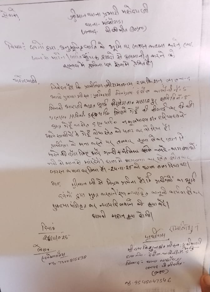 * рдЖрд░реЛрдк: рдХрд┐рд╕рд╛рди рдХреЗ рдЕрдиреБрд╕рд╛рд░, рдЧрд╛рдВрд╡ рдХреЗ рдХреБрдЫ рджрдмрдВрдЧреЛрдВ рдиреЗ рдЙрдирдХреА рдХреГрд╖рд┐ рднреВрдорд┐ рдкрд░ рдЬрдмрд░рди рдХрдмреНреЫрд╛ рдХрд░ рд▓рд┐рдпрд╛ рд╣реИред