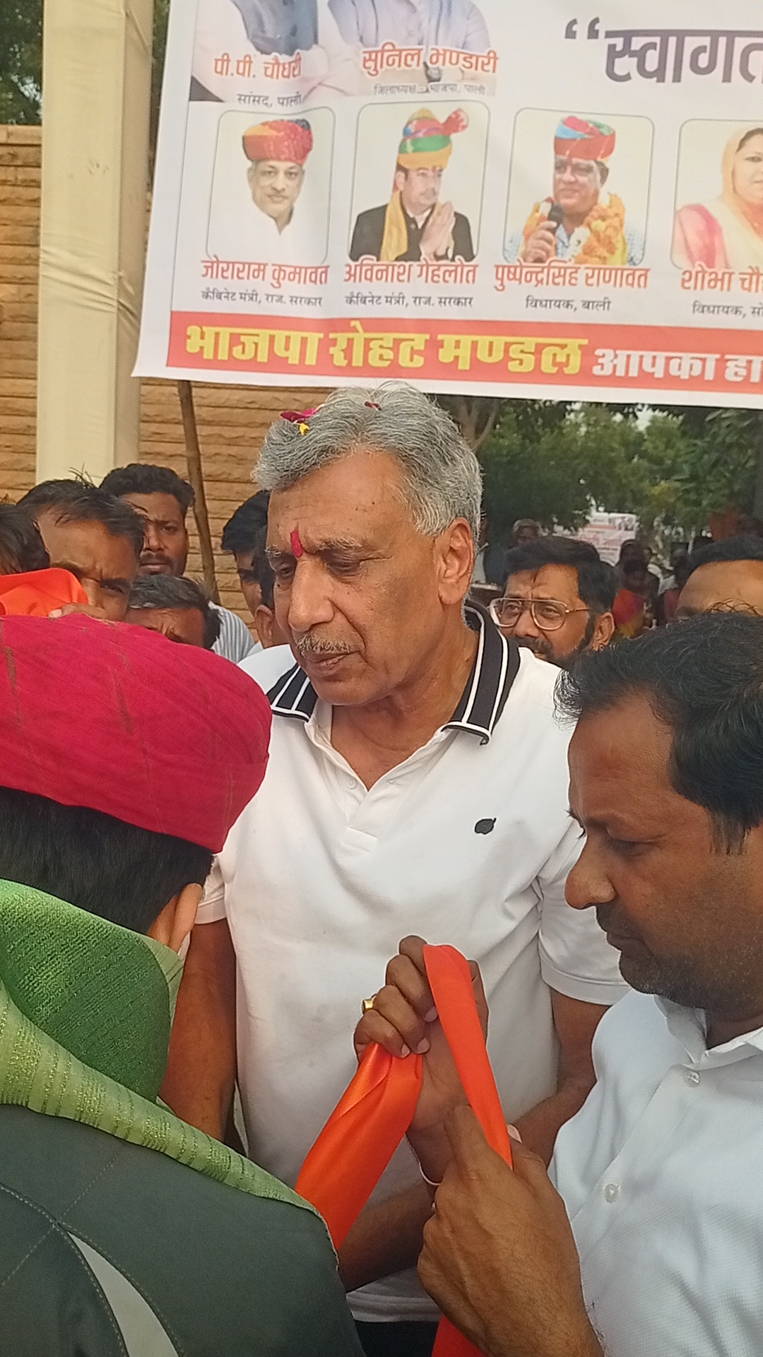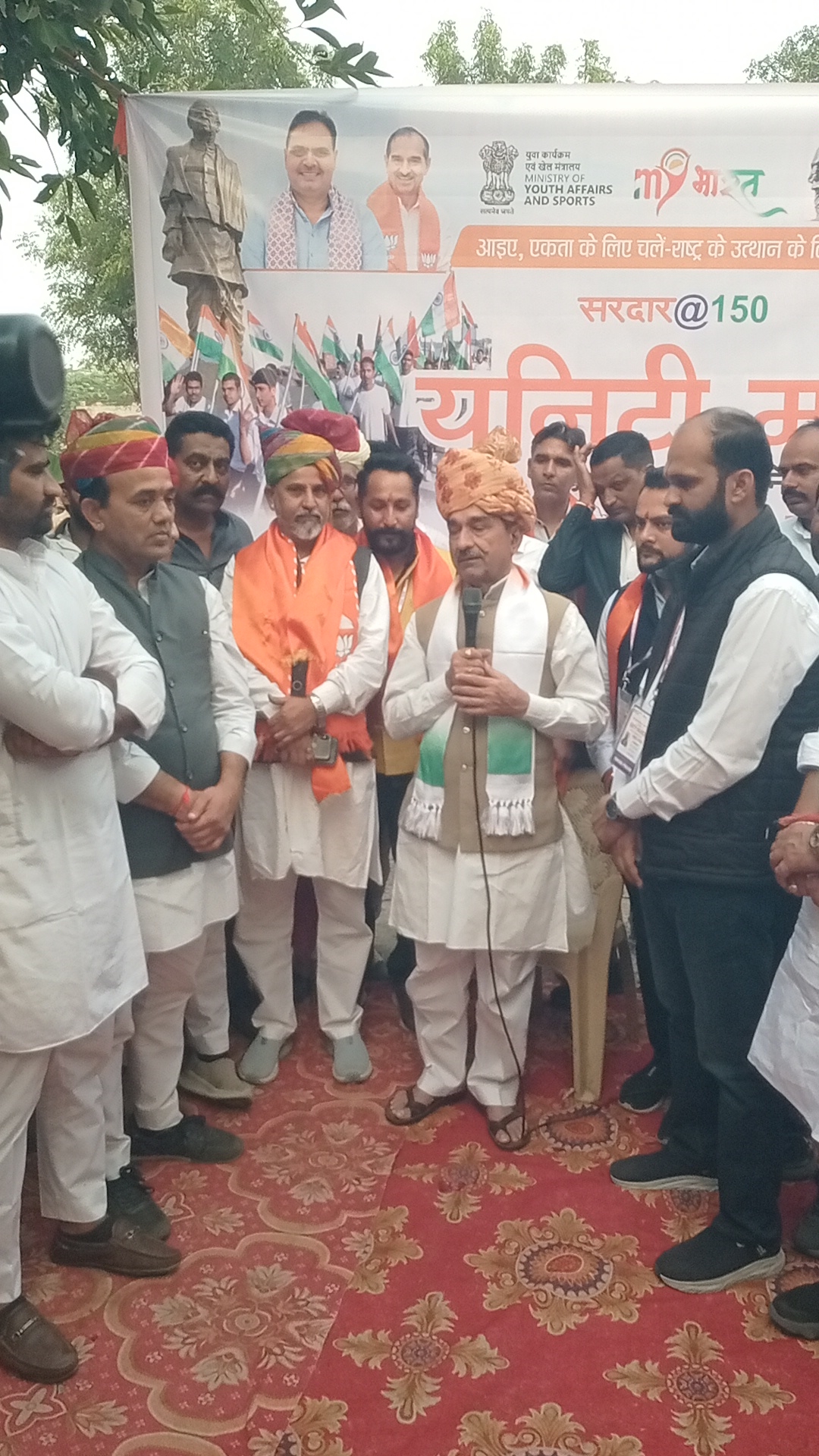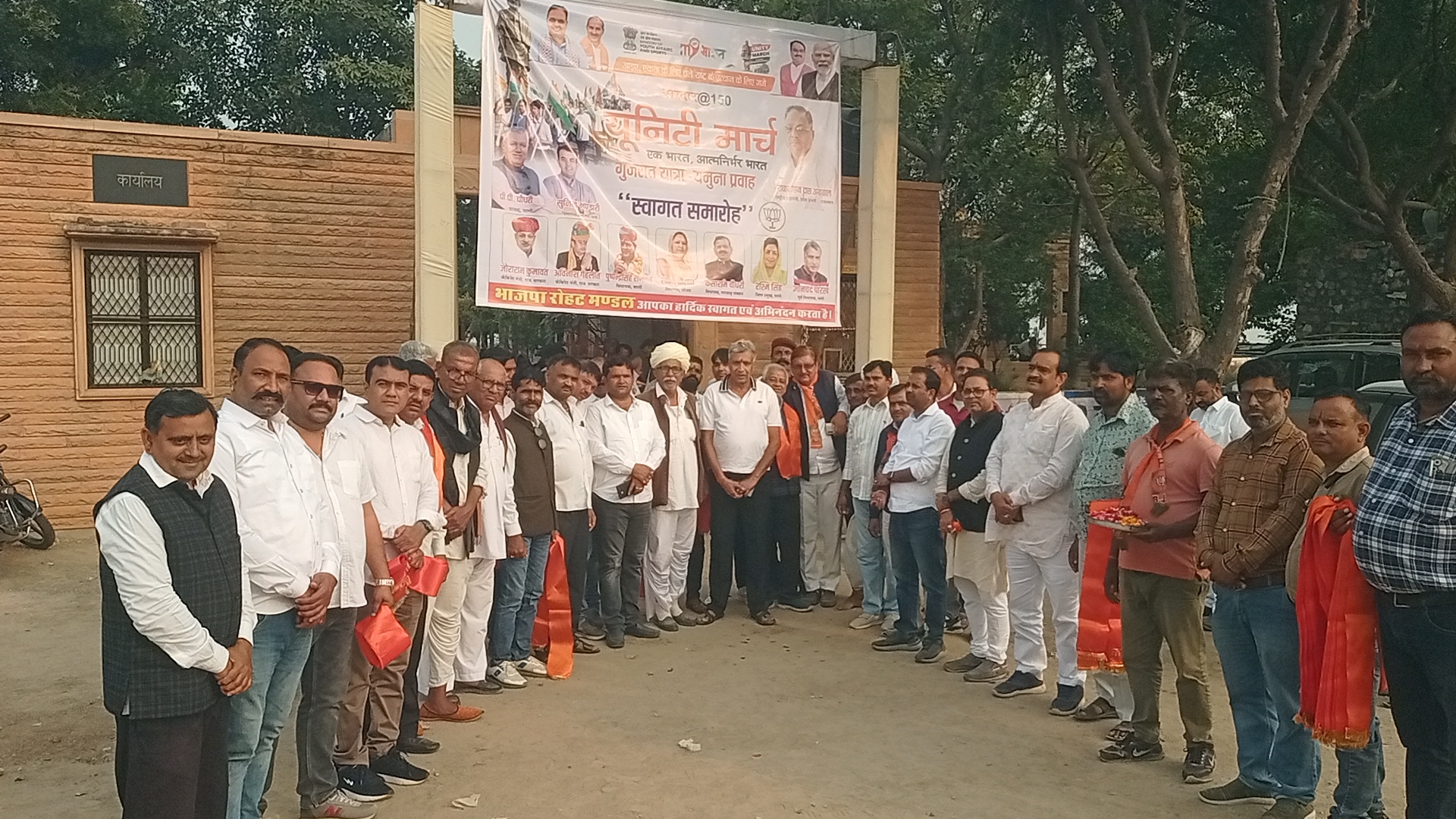 पाली रोहट क्षेत्र में बाबा रामदेव मंदिर रमटीला गाजनगढ़ पर शुक्रवार 28 नवंबर 2025 को भाजपा जिला महामंत्री दिग्विजय सिंह राठौड़ के नेतृत्व में सरदार वल्लभभाई पटेल की 150 वीं जयंती यूनिटी मार्च एक भारत आत्मनिर्भर भारत भारत यात्रा यमुना प्रवाह रामटीला गाजनगढ़ पहुंचने पर जोरदार स्वागत किया गया यूनिटी मार्च यात्रा के संयोजक विनीत त्यागी के निर्देशन में नव बसो में करीब 450 कार्यकर्ता गुजरात में केवड़िया पहुंचेंगे स्वागत के दौरान बीजेपी के प्रदेशाध्यक्ष मदन राठौड़, भाजपा के प्रदेश प्रभारी व राज्यसभा सांसद राधा मोहन अग्रवाल, कैबिनेट मंत्री जोराराम कुमावत, शिक्षा मंत्री मदन दिलावर, जिला अध्यक्ष सुनील भंडारी ,पूर्व विधायक ज्ञानचंद पारख, पुर्व अध्यक्ष महेंद्र बोहरा, को माला साफा डूप्टा पहनाकर स्वागत किया। स्वागत करता में मंत्री दिग्विजय सिंह राठौड़, देदाराम पटेल, केसर सिंह परिहार, प्रताप सिंह जोधा मंडलो के अध्यक्ष राजेंद्र पटेल जगदीश सिंह राजपुरोहित मानवेंद्र सिंह भाटी द्वारा यात्रा में आए कार्यकर्ताओं का स्वागत किया। यह रहे मौजूद वरिष्ठ भाजपा नेता गंगा दान चारण, पुखराज पटेल, प्रदेश उपाध्यक्ष नारसिंह जोधा, रामलाल चौहान, देवाराम, गिरधारी बावरी, भगवती प्रसाद, दिनेश सामरिया, पप्पू सिंह, भानाराम पटेल, अशोक गोस्वामी, सहित सैकड़ो कार्यकर्ता मौजूद रहे। महाप्रसादी के लाभार्थी किसान जिला महामंत्री देदाराम पटेल द्वारा की गई।