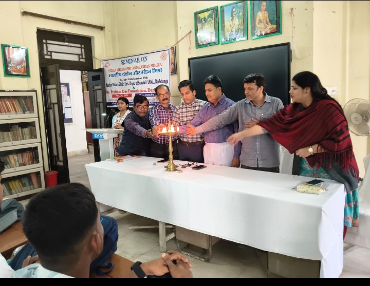 मंडन मिश्र पीट के समन्वयक एवं सेमिनार के संयोजक डॉ आर एन चौरसिया ने विषय प्रवेश करते हुए कहा कि मिथिला भारत के प्राचीनतम ज्ञान केन्द्रों में से एक रहा है। जहां शास्त्रार्थ में भारती जैसी विदुषी का निर्णायक होना मिथिला की श्रेष्ठ ज्ञान-परंपरा में स्त्री विद्वता की सशक्त भूमिका को दर्शाता है। मंडन मिश्र ने तर्क और भाष्य शैली को सुगठित रूप से प्रस्तुत किया और मीमांसा-वेदान्त के जटिल विषयों को सरल एवं प्रभावी रूप से व्यक्त किया। कहा कि मंडन मिश्र का व्यक्तित्व और कार्य मिथिला की शैक्षणिक परंपरा के मूल स्तंभ माने जाते हैं। उनके विचारों ने मीमांसा को वेदांत से जोड़ा, जहां कर्म ज्ञान के सहायक माने गए। उनके योगदान ने भारतीय दर्शन में कर्म-ज्ञान संवाद को समृद्ध किया। अध्यक्षीय संबोधन में पूर्व संस्कृत विभागाध्यक्ष डॉ घनश्याम महतो ने मंडन मिश्र पीठ के उद्देश्यों पर प्रकाश डालते हुए कहा कि मिथिला के दार्शनिकों में मंडन मिश्र का नाम विशेष आदर से लिया जाता है। वे न केवल मीमांसा और वेदांत के मर्मज्ञ विद्वान थे, बल्कि मिथिला की बौद्धिक संस्कृति के प्रतिनिधि भी माने जाते हैं।