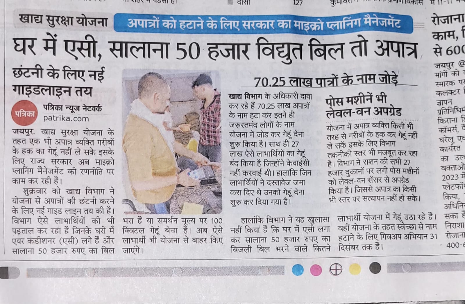 घर में ac या सालाना बिजली बिल 50000 विद्युत बिल भरा हो तो खाद्य सुरक्षा सूची से बाहर होंगे।