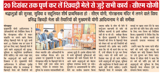 खबरहलचल न्यूज गोरखपुर मुख्यमंत्री योगी आदित्यनाथ ने गोरखनाथ मंदिर में शनिवार को अधिकारी एवं महापौर के साथ बैठक कर खिचड़ी मेला के सन्दर्भ में निर्देश।