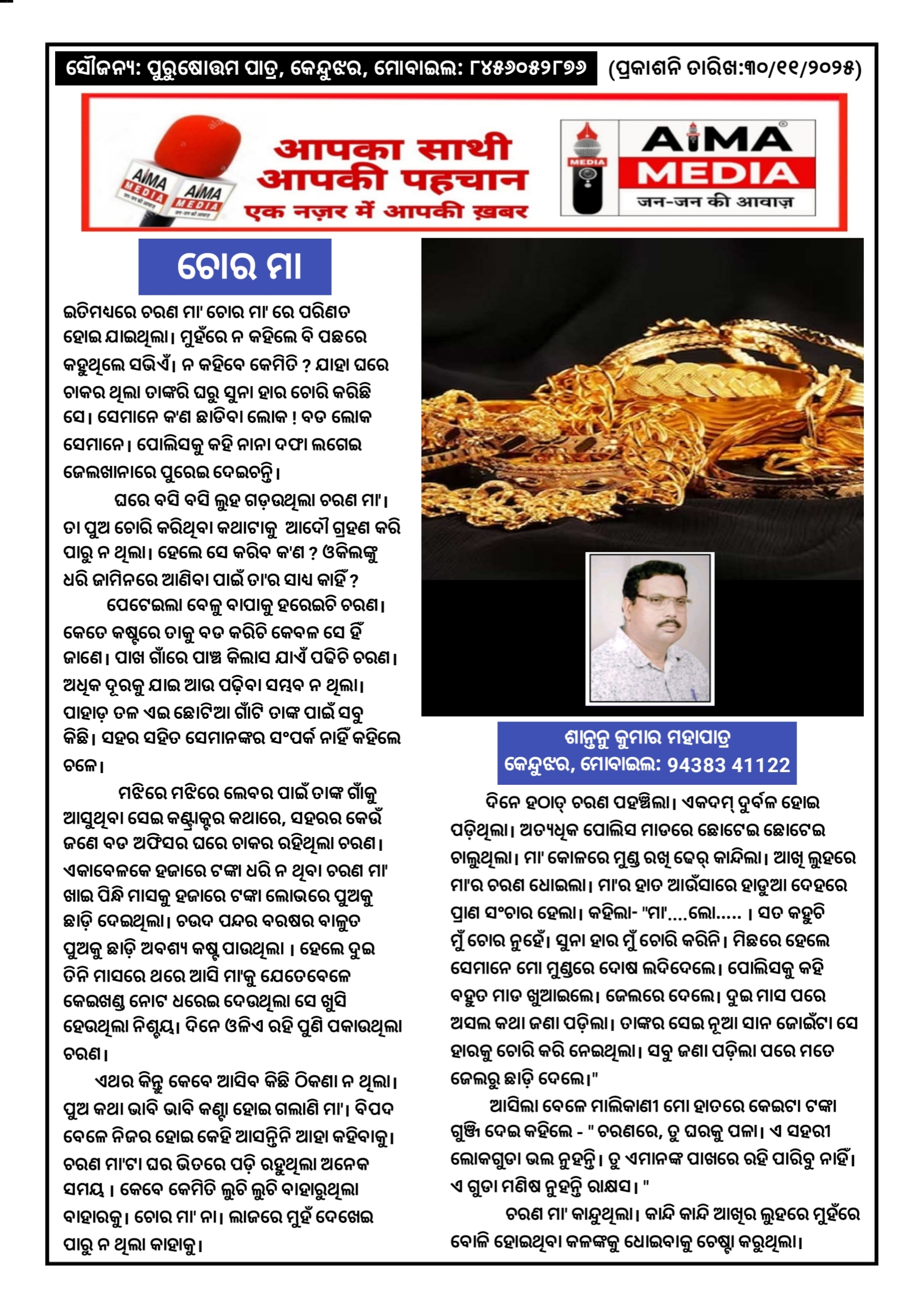 ପ୍ରକାଶକ: ପୁରୁଷୋତ୍ତମ ପାତ୍ର, କେନ୍ଦୁଝର, ମୋବାଇଲ: ୮୪୫୬୦୫୨୮୭୬