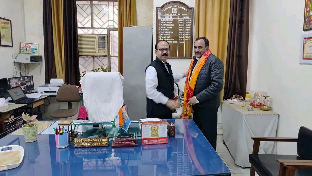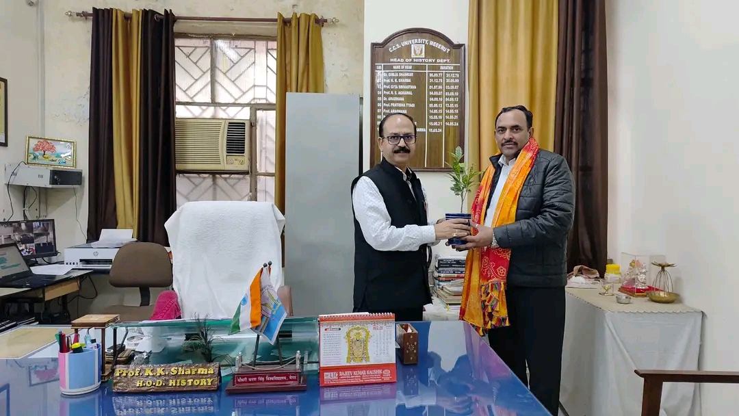 मेरठ। चौधरी चरण सिंह विश्विद्यालय के इतिहास विभाग में आज मेरठ बार के प्रतिष्ठित वरिष्ठ अधिवक्ता श्री वीरेंद्र कौशिक का आगमन हुआ, जहाँ विभागाध्यक्ष प्रो. कृष्ण कांत शर्मा ने उनका हार्दिक स्वागत करते हुए विभाग की ऐतिहासिक धरोहरों से अवगत कराया। यह महत्वपूर्ण मुलाकात इसलिए भी विशेष रही क्योंकि मेरठ बार स्वयं एक ऐतिहासिक संस्था है, जिसका गौरवशाली इतिहास वर्ष 1864 से प्रारंभ होता है।