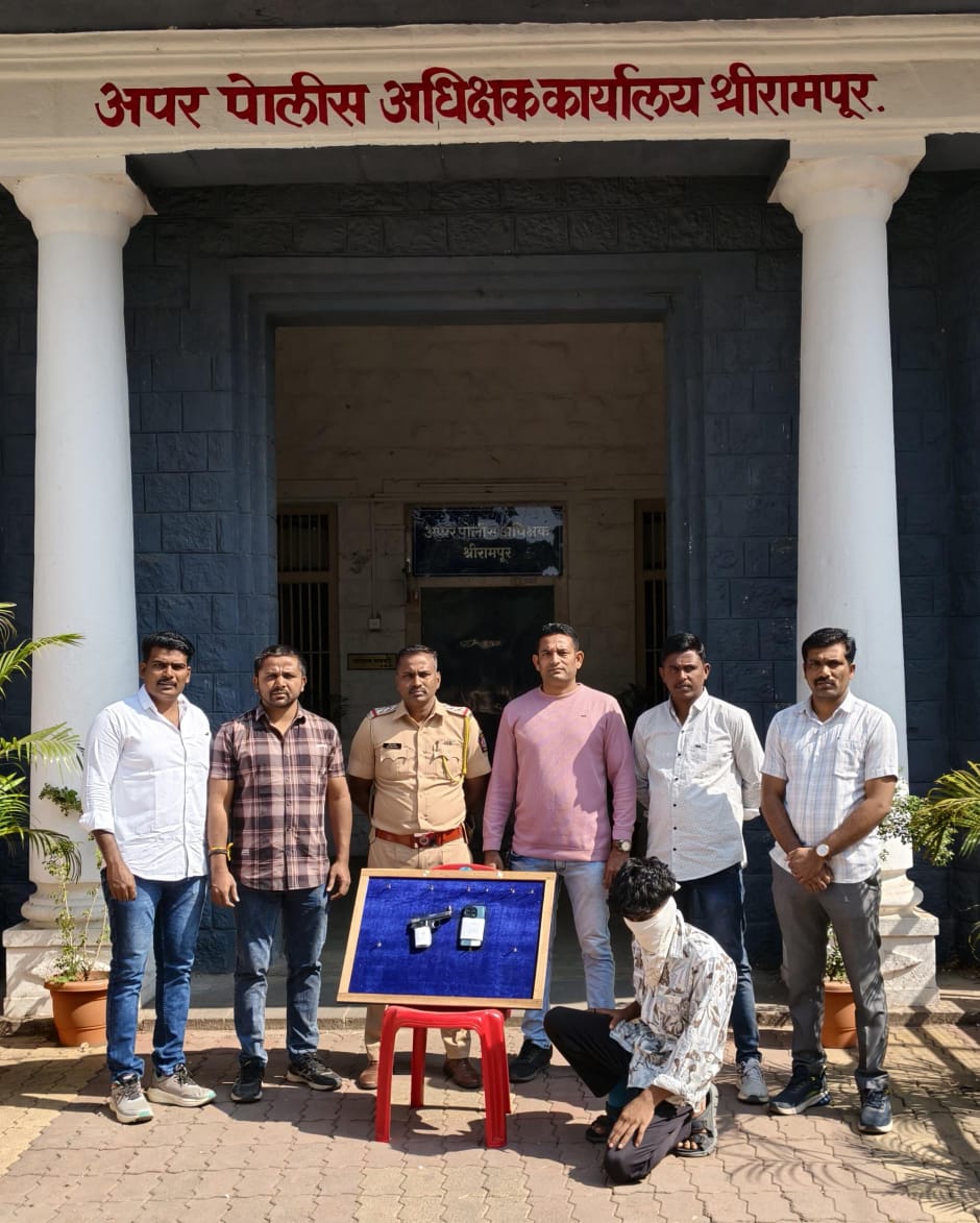सदर पथकाला त्या ठिकाणी दोन इसम हे संशयीतरीत्या फिरताना मिळुन आले. पोलिसांनी त्यांना ताब्यात घेवुन ओळख विचारली असता त्यांनी साहिल शकिल पिंजारी, वय 23 वर्षे,रा-मोरगेवस्ती,वार्ड नं 07,ता.श्रीरामपुर व एक विधीसंघर्षीत बालक असल्याचे सांगितले. त्यांची अंगझडती घेतली असता त्यांच्याकडे एक देशी बनावटीचे गावठी पिस्टाल व एक जिवंत काडतुस मिळुन आले. त्यांना विश्वासात घेवुन विचारपुस केली असता त्यांनी सांगितले कि, पिस्टल विक्री करण्याच्या उद्देशाने आणले आहे. सदर पिस्टल जप्त करण्यात आले असून श्रीरामपुर शहर पोलीस स्टेशन येथे गुं.र.नं. 1054/2025 भारतीय शस्त्र अधिनियम कलम 3/25,7 प्रमाणे गुन्हा दाखल करण्यात आला आहे.