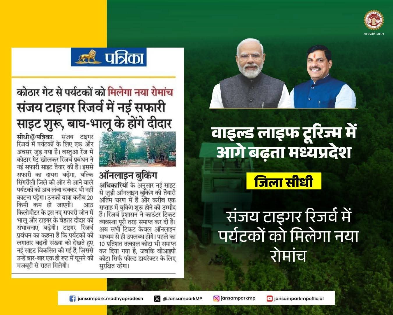 🐯संजय टाइगर रिजर्व में पर्यटकों को मिलेगा नया रोमांच