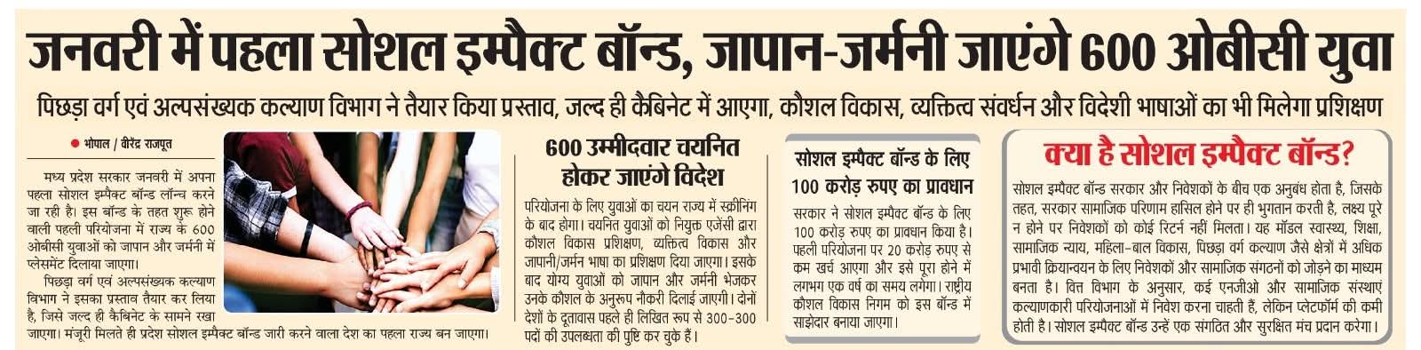 जनवरी में पहला सोशल इम्पैक्ट बाॅन्ड,जापान जर्मनी में जायेंगे 600 ओबीसी युवा