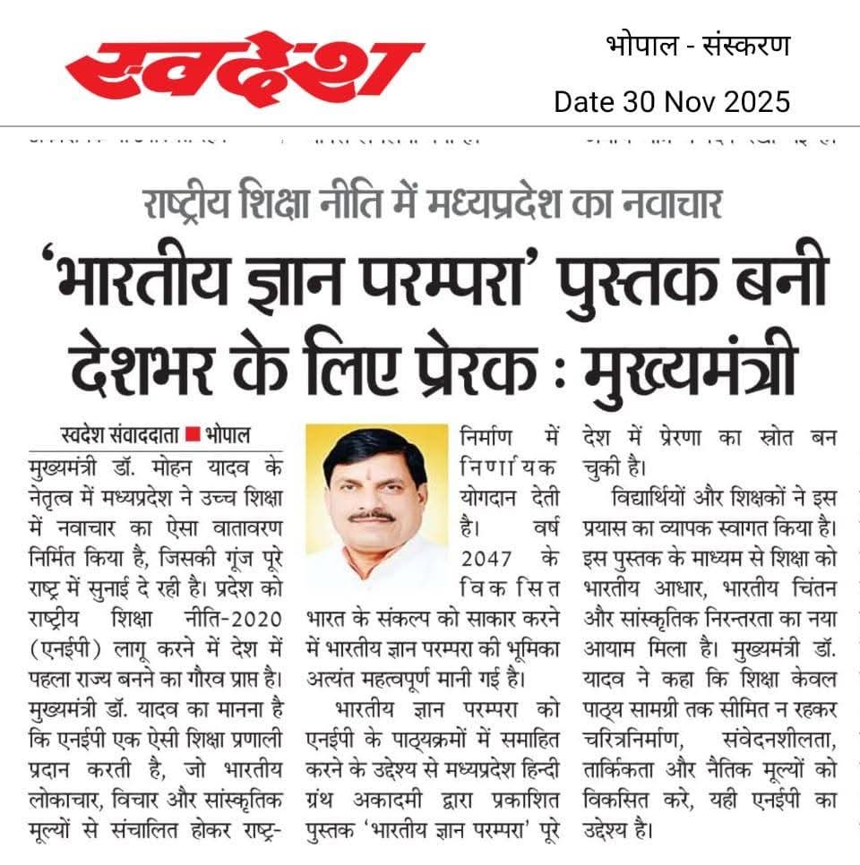 'भारतीय ज्ञान परम्परा ' पुस्तक बनी देशभर के लिए प्रेरक : मुख्यमंत्री डॉ.मोहन यादव