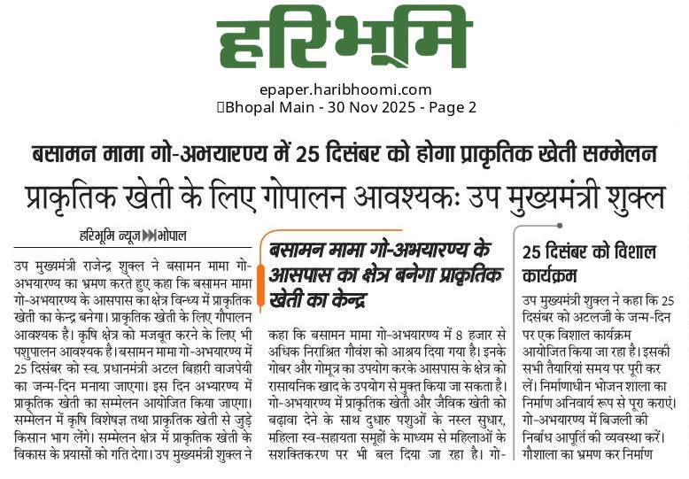 बसासन मामा गो अभ्यारण्य में 25 दिसंबर को होगा प्राकृतिक खेती सम्मेलन