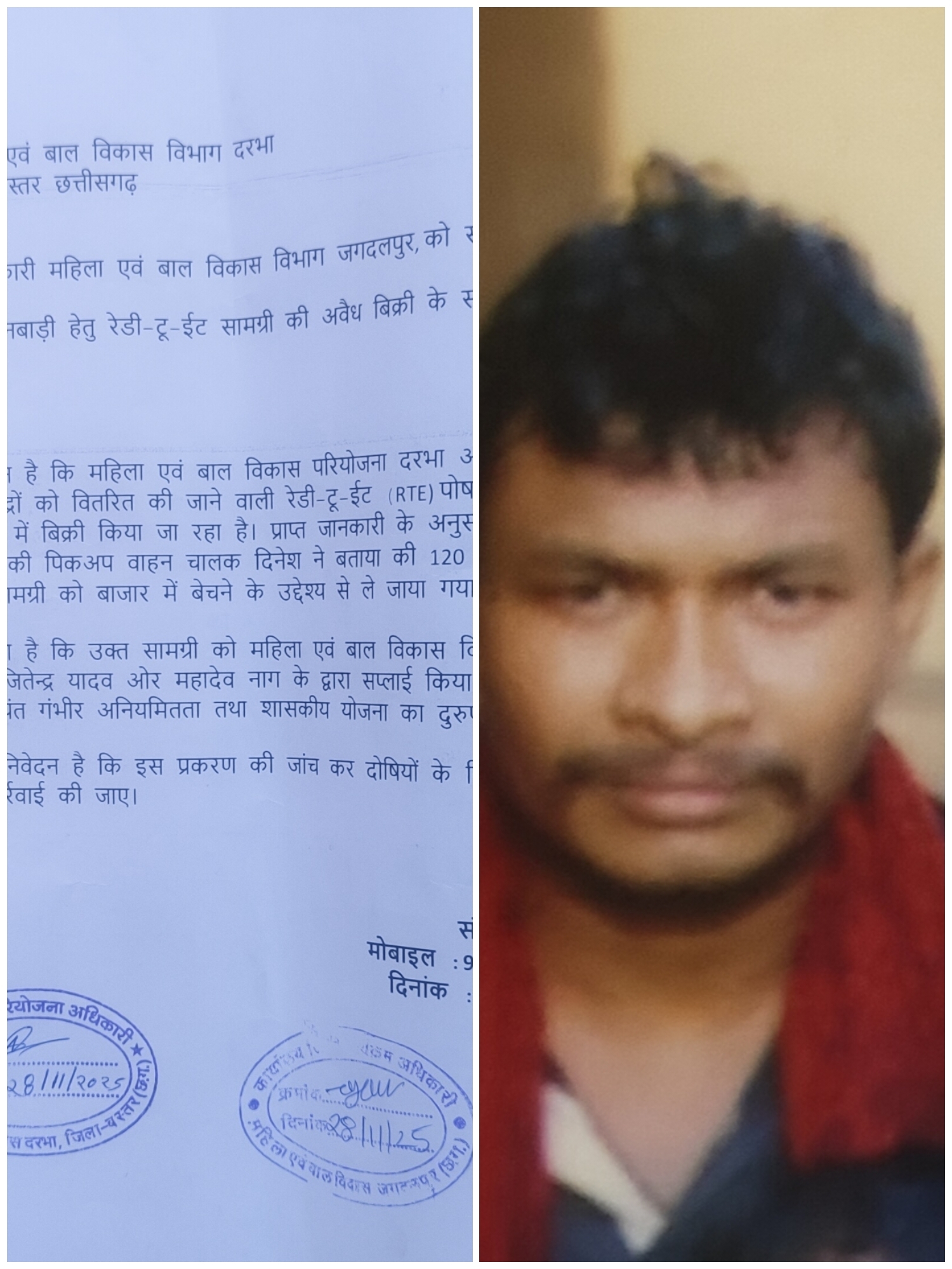 महिला एवं बाल विकास विभाग दरभा के कर्मचारी द्वारा आंगनबाड़ी हेतु रेडी-टू-ईट (RTE) सामग्री की अवैध बिक्री