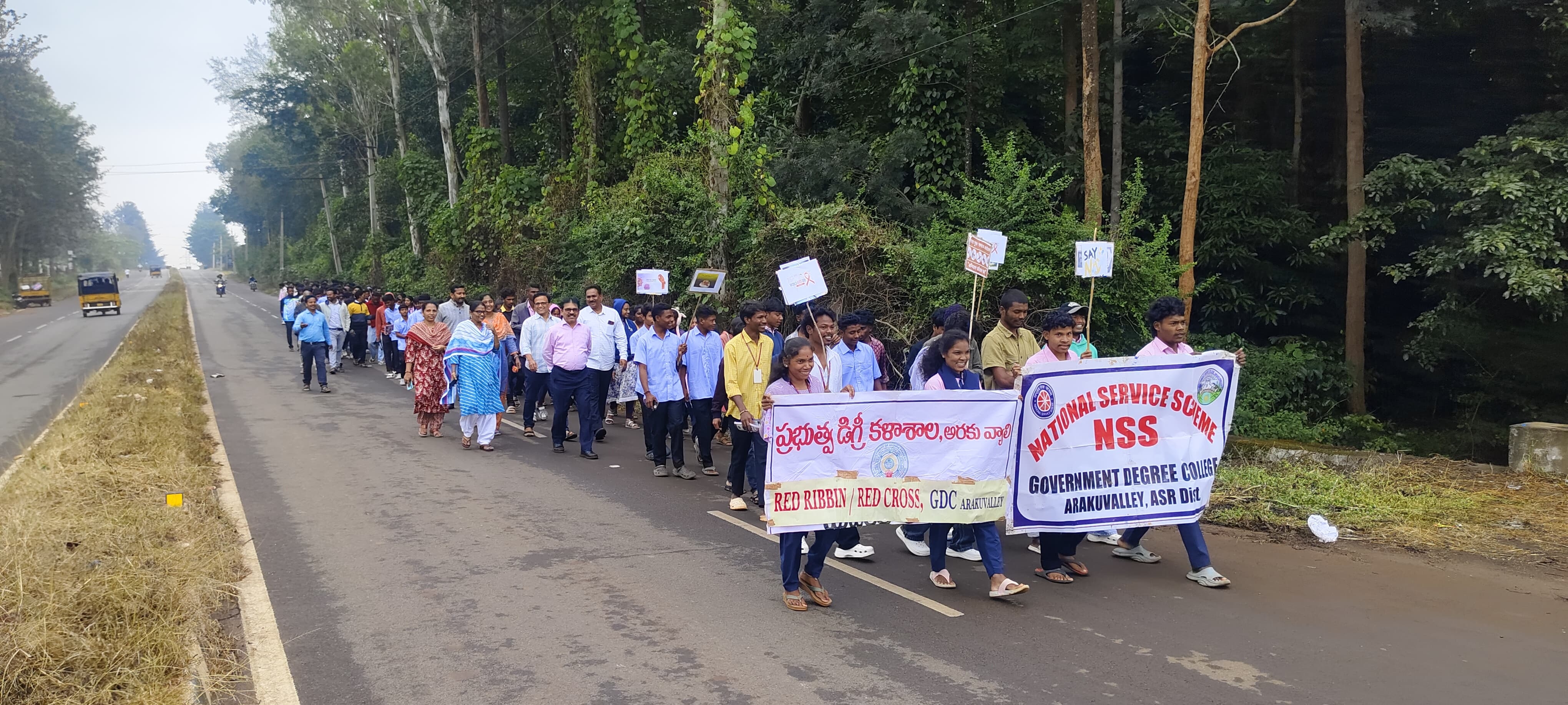 అరకులోయ ప్రభుత్వ డిగ్రీ కళాశాలలో ఎయిడ్స్ డే ఘనంగా జరిపారు. ఈ మేరకు విద్యార్ధులకు ఎయిడ్స్ వ్యాధి నియంత్రణ పై అవగాహణ పరచి, గ్రామాల్లోని ప్రజలకు ఎయిడ్స్ వ్యాధి నియంత్రణపై అవగాహణ కల్పించాలని ప్రిన్సిపాల్స్ డా నాయక్ విద్యార్థులకు సూచించారు. అనంతరం కళాశాల నుండి రవ్వలగూడ జంక్షన్ వరకు ఎయిడ్స్ వ్యాధి పై అవగాహణ ర్యాలీని నిర్వహించారు. అధ్యాపకులు, ఎన్ఎస్ఎస్ పిఓ లు పాల్గొన్నారు.