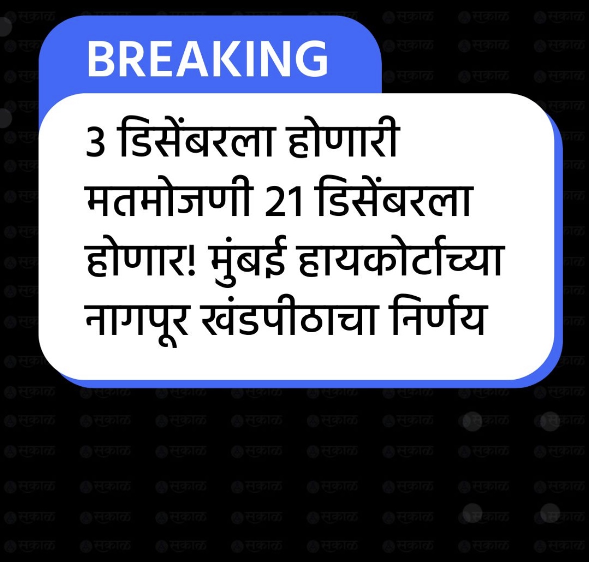 ब्रेकिंग न्यूज: 🏛️ उच्च न्यायालयाच्या आदेशामुळे स्थानिक स्वराज्य संस्थांच्या मतमोजणीला विलंब