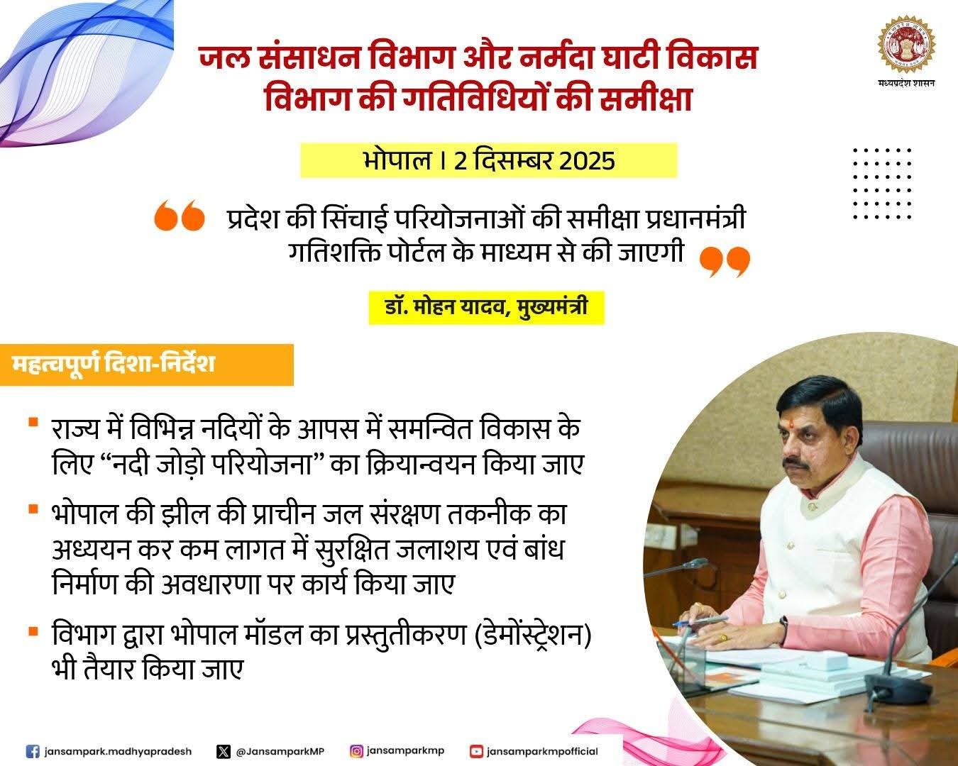 मुख्यमंत्री डॉ. मोहन यादव द्वारा जल संसाधन विभाग और नर्मदा घाटी विकास विभाग की गतिविधियों की समीक्षा