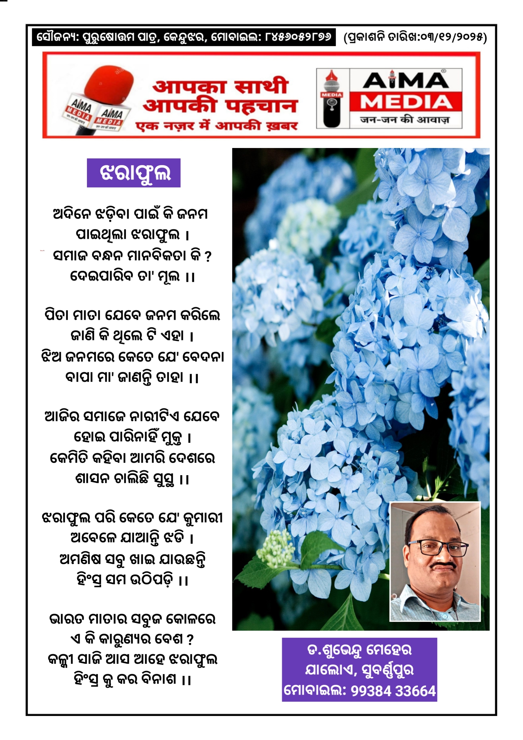 ଝରାଫୁଲ- ଡଃ ଶୁଭେନ୍ଦୁ ମେହେର ଙ୍କ ଦ୍ଵାରା ରଚିତ କବିତା।