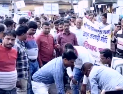 আলু ব্যবসায়ীর বিক্ষোভ প্রতিবাদ পশ্চিম মেদিনীপুর চন্দ্রকোনা,