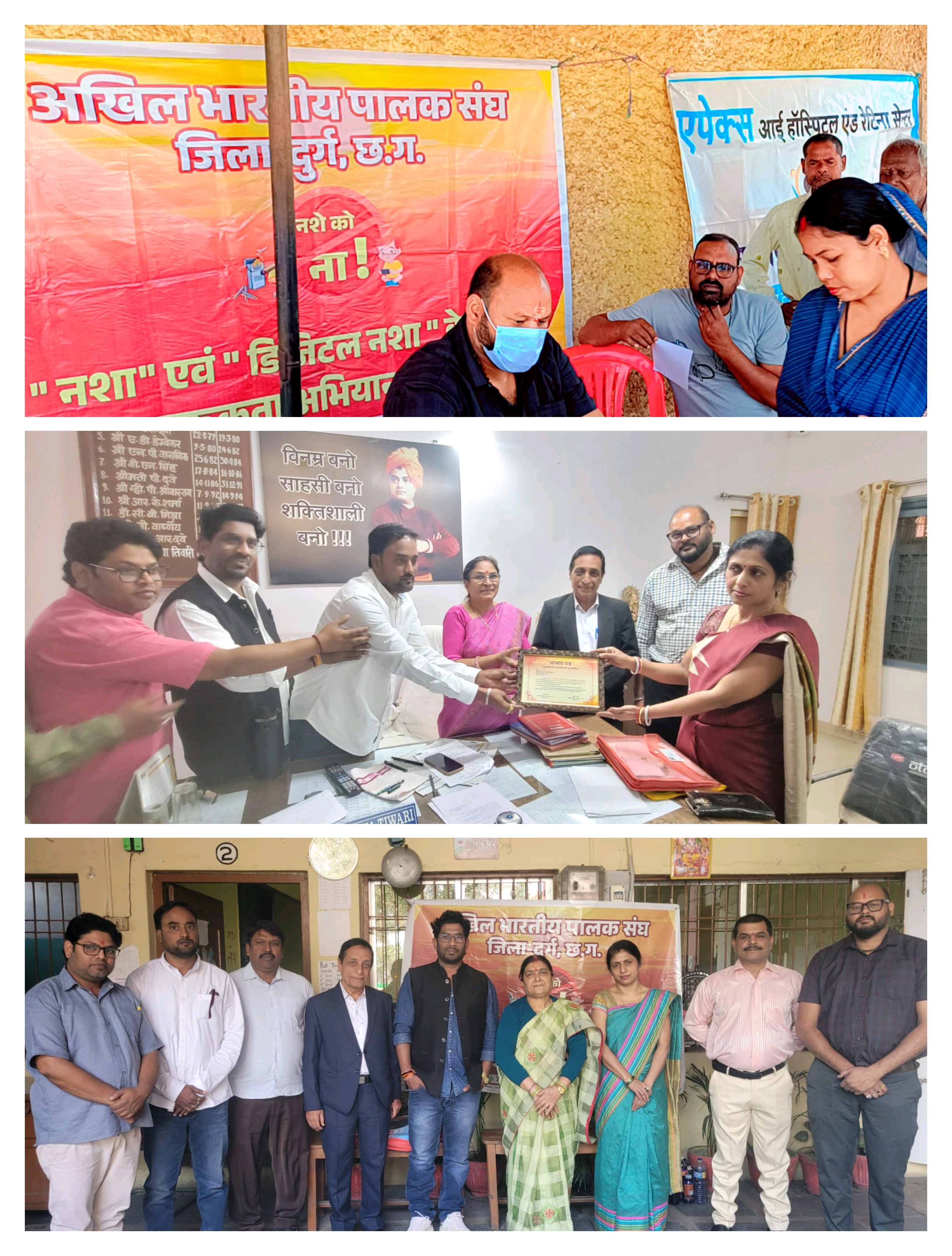 " अखिल भारतीय पालक संघ" के द्वारा देवबलौदा चरोदा में नेत्र जांच शिविर में विशेषज्ञ "डॉ संतोष सिंह" एवं संस्था के संयोजक "किशोर कुमार" के द्वारा निःशुल्क नेत्र प्ररीक्षण का कार्यक्रम किया गया जिसमें क्षेत्रवासियों को आंखों से संबंधित परेशानियों का निरीक्षण कर उन्हें दूर करने एवं उचित इलाज करने हेतु प्रेरित किया गया साथ ही " नशा" एवं " डिजिटल नशा" से दूर रह कर अपने जीवन को सफल बनाने के लिए क्या करे , इस पर विशेष स्कूल कार्यशाला का आयोजन हायर सेकेंडरी स्कूल कैंप–1, तथा श्रद्धा मोंटेंशरी स्कूल , खुर्सीपार में किया गया। जहां मुख्य वक्ता के रूप में हमारे अंचल के बहुचर्चित शिक्षक एवं समाजसेवी "बी सुग्रीव" अपने अनमोल वचनों से बच्चों को "नशे" एवं " डिजिटल नशे" से दूर रह कर अपने करियर को सफल बनाने का गुण सिखाए , जहां बच्चे अत्यंत उत्साह के साथ उनके बहुमूल्य वचनों को सुन कर अपने करियर को नशे से दूर रहते हुए सफल करने का संकल्प एवं मार्गदर्शन प्राप्त किए, कार्यक्रम में स्कूल की प्रिंसिपल जया तिवारी ,राधा चतुर्वेदी एवं अखिल भारतीय पालक संघ समिति के अध्यक्ष अरुंधूति दुबे , संयोजक किशोर कुमार , सचिव प्रदीप दुबे, संचालक स्वदेश शुक्ला , नीतेश भंडारी, डॉ.संतोष सिंह, संजीत सोनी सहित स्कूल के सभी शिक्षक उपस्थित रहे।