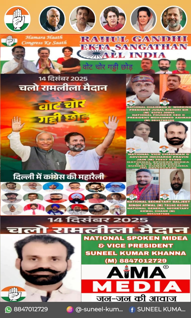 चलो रामलीला मैदान 14 दिसंबर 2025 कोंग्रेस की महारैली Poster mein narebaji वोट चोर गड्डी छोड़