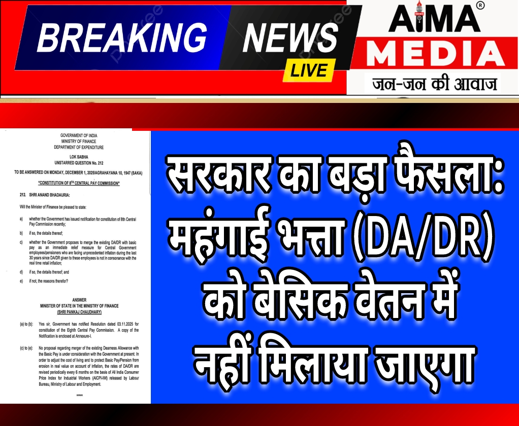 ЁЯУ░ рд╕рд░рдХрд╛рд░ рдХрд╛ рдмрдбрд╝рд╛ рдлреИрд╕рд▓рд╛: рдорд╣рдВрдЧрд╛рдИ рднрддреНрддрд╛ (DA/DR) рдХреЛ рдмреЗрд╕рд┐рдХ рд╡реЗрддрди рдореЗрдВ рдирд╣реАрдВ рдорд┐рд▓рд╛рдпрд╛ рдЬрд╛рдПрдЧрд╛